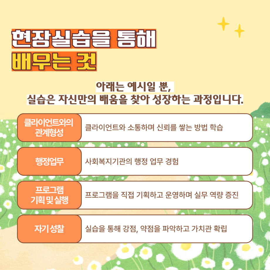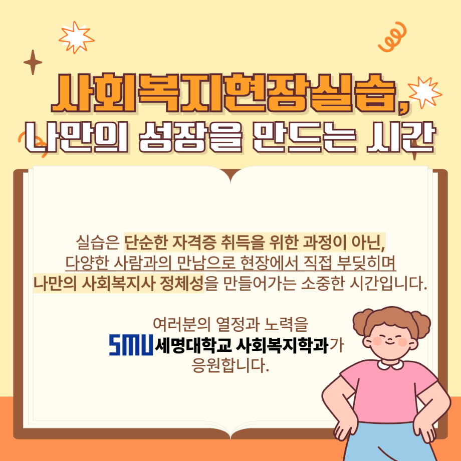 본문 시작 홈으로 커뮤니티 학과소개 교수소개 교육과정 현장실습 및 취업정보 커뮤니티 홈페이지가이드 학생 소통 광장 학과공지 학사일정 학생회 동아리 학생 소통 광장 포토갤러리 전공자료실 서식자료실 학생 소통 광장 페이스북 트위터 프린트 사회복지현장실습 알고 가자! 사회복지학과 1600 2025-08-04 오늘은 세명대학교 사회복지학과가 알려주는 '사회복지현장실습 알고 가자!' 편입니다. 목록 이전5월 8일은 어버이날입니다. 다음 사회복지현장실습 과정 안내 담당부서 : 사회복지학과 담당자 : - 연락처 : 043-649-1799 최종수정일 : 2024-10-26 만족도조사 만족도 조사 이 페이지에서 제공하는 정보에 대하여 만족하시나요? 매우만족 만족 보통 불만족 매우불만족