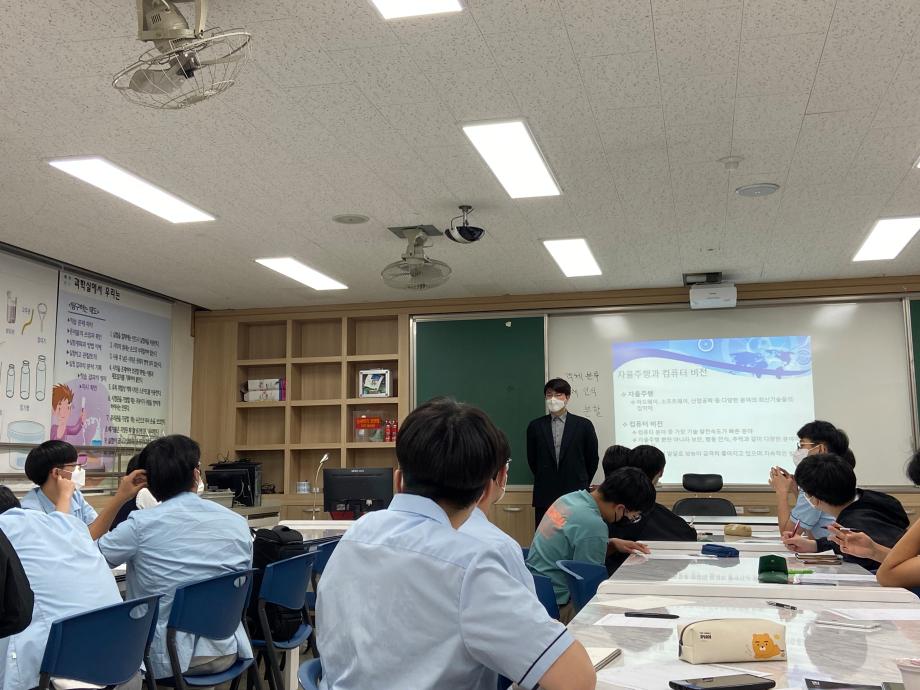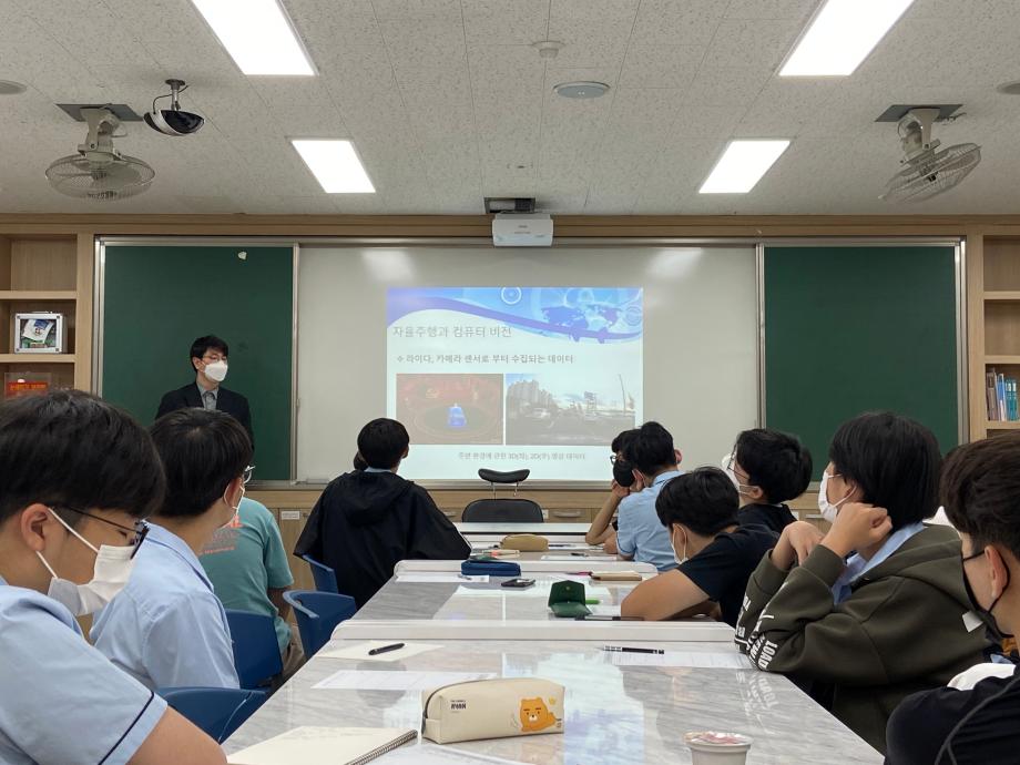 본문 시작 홈으로 학부활동 학부소개 학부활동 교육과정 커뮤니티 학부생활 입학안내 홈페이지가이드 학부갤러리 학부행사 학생회 활동 전공 동아리 학부갤러리 학부갤러리 페이스북 트위터 프린트 충북진로교육원 주관 찾아가는 고교특강 '세명고등학교' 특강 컴퓨터학부 2868 2022-05-23 우리 컴퓨터학부에서 충북진로교육원이 주관하는 찾아가는 고교특강을 세명고등학교를 대상으로 진행하였습니다. 주제는 최근 많은 관심을 받고 있는 '인공지능 기술과 미래'에 관한 주제로 세부 주제는 자율주행과 컴퓨터비젼으로 고등학생들이 컴퓨터 분야에 흥미를 가질 수 있는 내용을 진행되었습니다. 장소: 세명고등학교 일시: 2022년 5월 19일 19:00~20:30 목록 이전컴퓨터학부 학과체험 프로그램 고등학생 대상 특강 진행 완료 다음 2022학년도 컴퓨터학부 농촌봉사활동(수산면 수곡리) 담당부서 : 컴퓨터학부 담당자 : - 연락처 : 043-649-1272 최종수정일 : 2024-10-26 만족도조사 만족도 조사 이 페이지에서 제공하는 정보에 대하여 만족하시나요? 매우만족 만족 보통 불만족 매우불만족