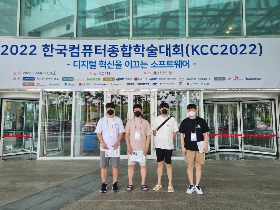 세명대학교 컴퓨터학부 소속 고상근 학생, 이다혁 학생, 민정호 학생과 숭실대학교 소프트웨어학과 소속 장현수 학생이 이수안 교수님의 지도 하에 '2022 한국컴퓨터종합학술대회 학부생/주니어 논문경진대회 학부생부문'에서 장려상을 수상하였습니다.