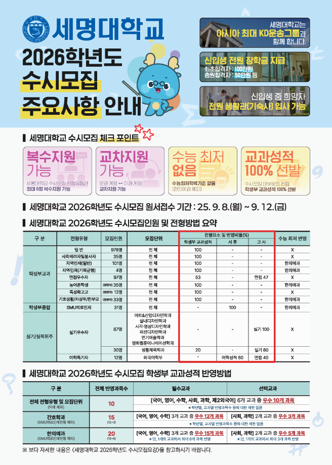 본문 시작 홈으로 학부활동 학부소개 학부활동 교육과정 커뮤니티 학부생활 입학안내 홈페이지가이드 학부갤러리 학부행사 학생회 활동 전공 동아리 학부갤러리 학부갤러리 페이스북 트위터 프린트 2026학년도 수시모집 주요사항 전체관리자 1364 2025-09-03 2026학년도 수시모집 주요사항 안내 목록 이전컴퓨터학부 소개 다음 컴퓨터학부 윈도우즈프로그래밍 전공 실습 담당부서 : 컴퓨터학부 담당자 : - 연락처 : 043-649-1272 최종수정일 : 2024-10-26 만족도조사 만족도 조사 이 페이지에서 제공하는 정보에 대하여 만족하시나요? 매우만족 만족 보통 불만족 매우불만족