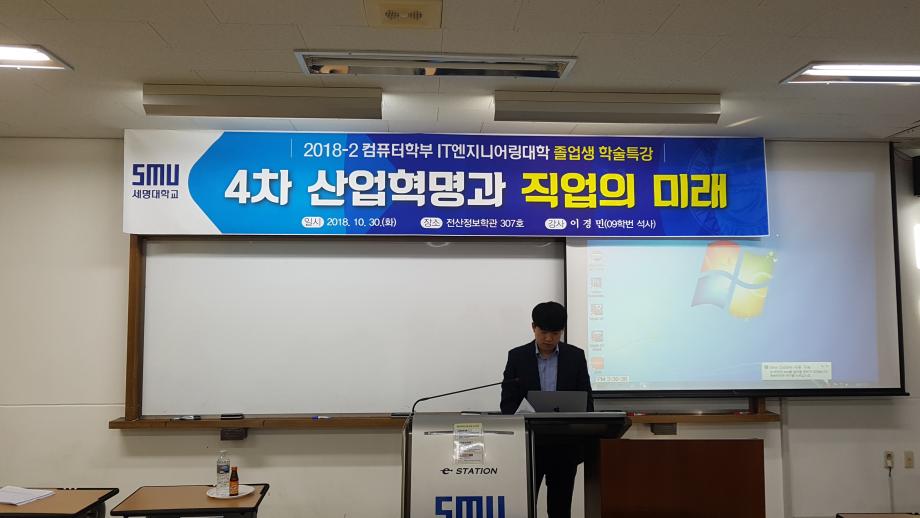 본문 시작 홈으로 학부활동 학부소개 학부활동 교육과정 커뮤니티 학부생활 입학안내 홈페이지가이드 학부갤러리 학부행사 학생회 활동 전공 동아리 학부갤러리 학부갤러리 페이스북 트위터 프린트 181030 IT단과대학 졸업생 취업특강 컴퓨터학부 7392 2018-10-30 전산 307호에서 컴퓨터학부 졸업생 전자부품연구원(KETI) 지능형영상처리센터 연구원 이경민(09학번, 2016년도 졸업) '4차 산업혁명과 직업의 미래' 라는 주제로 강의를 하였습니다. 목록 다음 181101 제1회 IT엔지니어링대학 학술발표대회 다음 181127 컴퓨터실무체험 교과목 취업특강 담당부서 : 컴퓨터학부 담당자 : - 연락처 : 043-649-1272 최종수정일 : 2024-10-26 만족도조사 만족도 조사 이 페이지에서 제공하는 정보에 대하여 만족하시나요? 매우만족 만족 보통 불만족 매우불만족