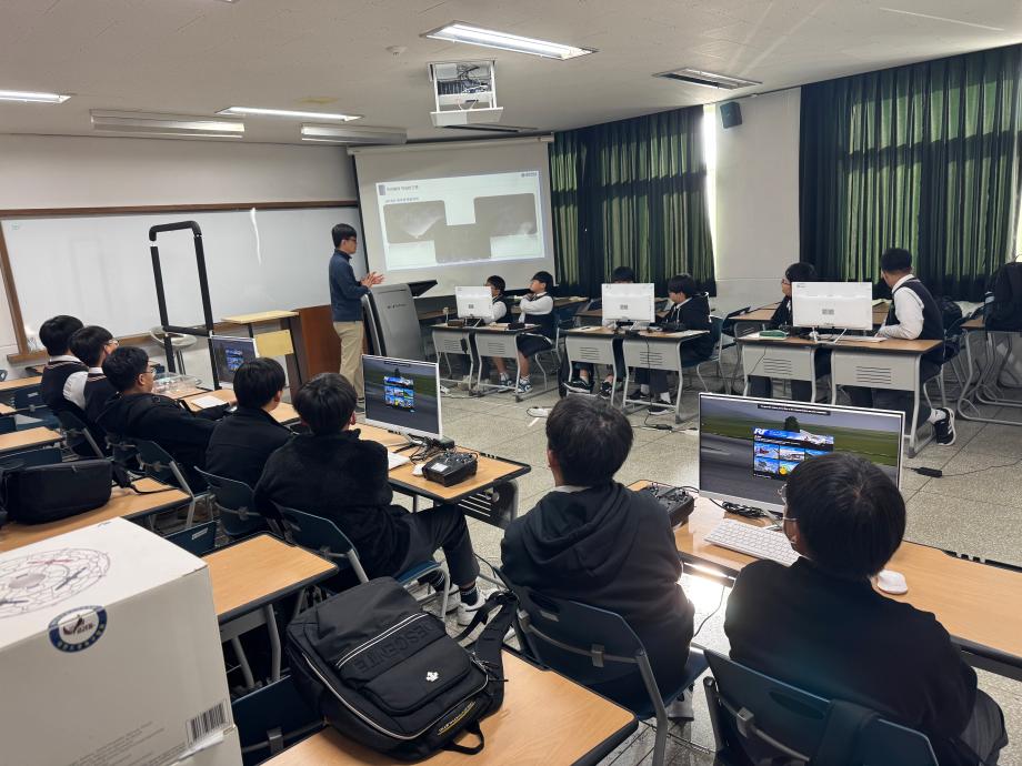 대제중학교에서 온 학생들의 전공체험을 위해 실제 드론도 날려보고 드론시뮬레이터 체험도 진행하였습니다.