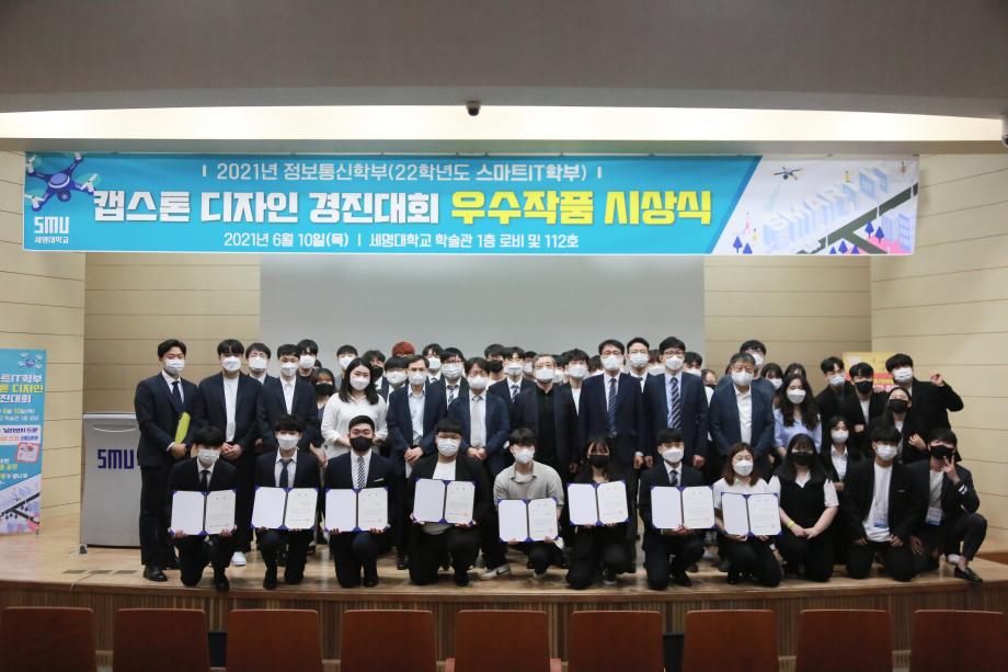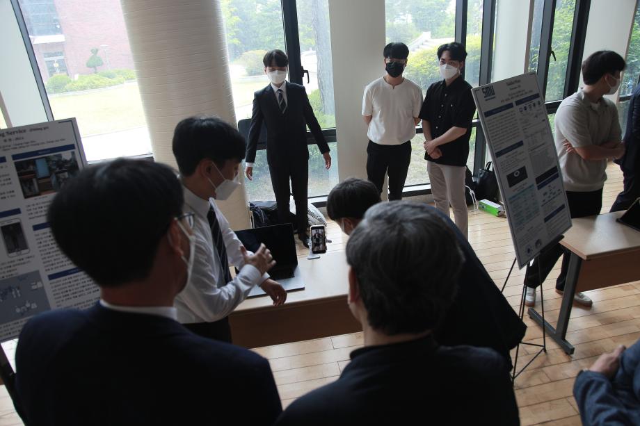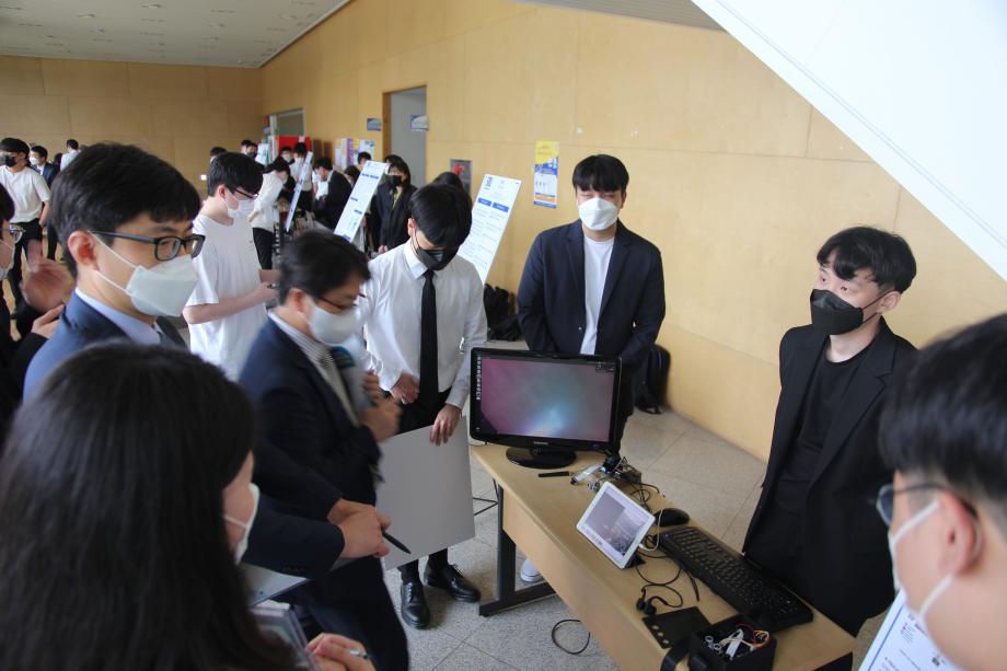 본문 시작 홈으로 SMIT 소식 SMIT 소개 SMIT 교육 SMIT 취업 SMIT 소식 SMIT 입학 홈페이지가이드 갤러리 공지사항 갤러리 경진대회 동아리 갤러리 페이스북 트위터 프린트 2021학년도 스마트IT학부 캡스톤디자인 경진대회 정보통신학부 4592 2021-06-10 2021년 06월 10일 정보통신학부에서는 캡스톤디자인 경진대회를 학술관1층 로비에서 진행하였습니다. 4학년 재학생들이 4년동안 학습한 지식의 미무리 단계로서 1년 동안 준비한 작품을 교수님들께 설명과 함께 시연하고 교수님들의 평가 후 우수작품을 선정하여 학술관112호에서 시상하였다. 캡스톤디자인 결과발표회를 통해서 재학생들은 산업현장에서 진행해야 하는 프로젝트 업무를 간접적으로 느낄 수 있는 뜻 깊은 자리 였습니다. 목록 이전스마트IT학부 홍보팀 “스마트하랑”발대식 다음 2022학년도 스마트IT학부 리플렛 담당부서 : 스마트IT학부 담당자 : - 연락처 : 043-649-1275 최종수정일 : 2024-10-26 만족도조사 만족도 조사 이 페이지에서 제공하는 정보에 대하여 만족하시나요? 매우만족 만족 보통 불만족 매우불만족