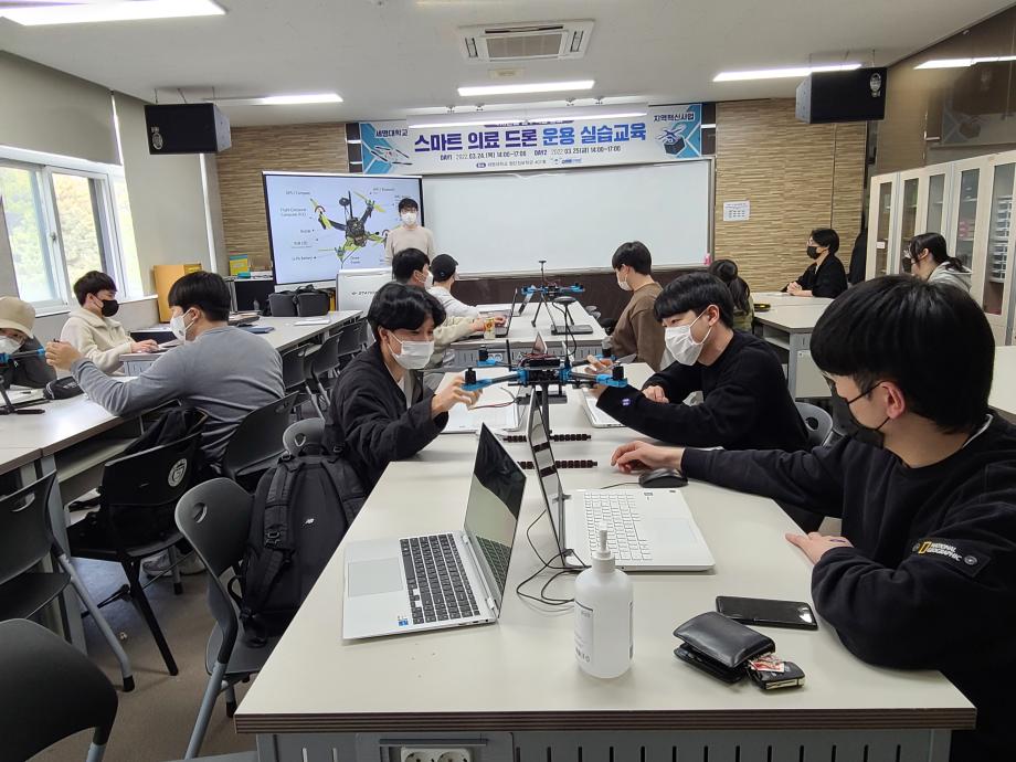 본문 시작 홈으로 SMIT 소식 SMIT 소개 SMIT 교육 SMIT 취업 SMIT 소식 SMIT 입학 홈페이지가이드 갤러리 공지사항 갤러리 경진대회 동아리 갤러리 페이스북 트위터 프린트 4차산업 실무역량 강화 스마트 의료 드론 운용 실습교육 진행 스마트IT학부 2650 2022-03-25 스마트IT학부에서는 3월 24일, 25일 14시~17시까지 이틀에 걸쳐 첨단정보학관 407호에서 4차산업 실무역량 강화를 위한 스마트 의료 드론 운용 실습교육을 진행하였다. 학부 재학생 약 20명이 참여하여 의료 드론에 관찬 기초적인 강의를 듣고, 직접 드론을 만들어 코딩으로 드론을 조종하는 방법까지 체험하였다. 목록 이전스마트IT학부_신입생 대환영 드론 경진대회 다음 [스마트IT학부] 지역고교대상 프리칼리지 프로그램 시행 담당부서 : 스마트IT학부 담당자 : - 연락처 : 043-649-1275 최종수정일 : 2024-10-26 만족도조사 만족도 조사 이 페이지에서 제공하는 정보에 대하여 만족하시나요? 매우만족 만족 보통 불만족 매우불만족