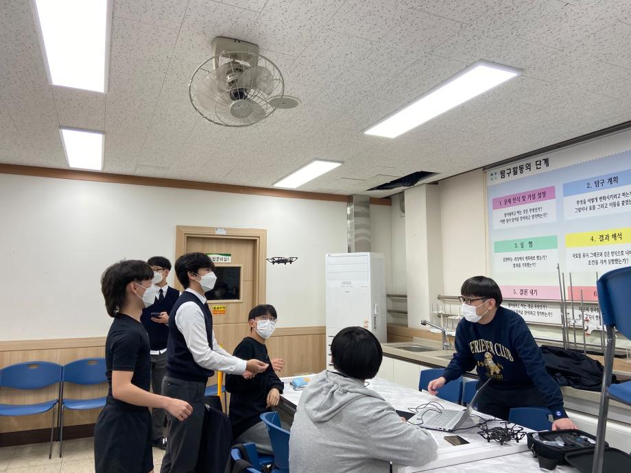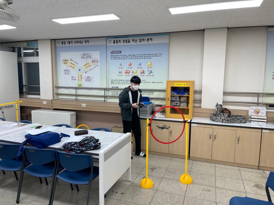 첫 과정으로 드론과 코딩에 대한 기초교육을 받은 뒤, 교수님과 스마트IT학부 재학생들의 도움을 받아 코딩으로 드론을 날리는 방식을 구축하여 학생들이 직접 드론을 조종하고 장애물을 통과해 기록을 겨루는 레이싱 시합을 펼쳤고, 마지막에는 질의응답 시간을 통해 제천고 학생들의 드론과 코딩에 대한 관심을 더욱 끌어올리는 시간을 가졌다.