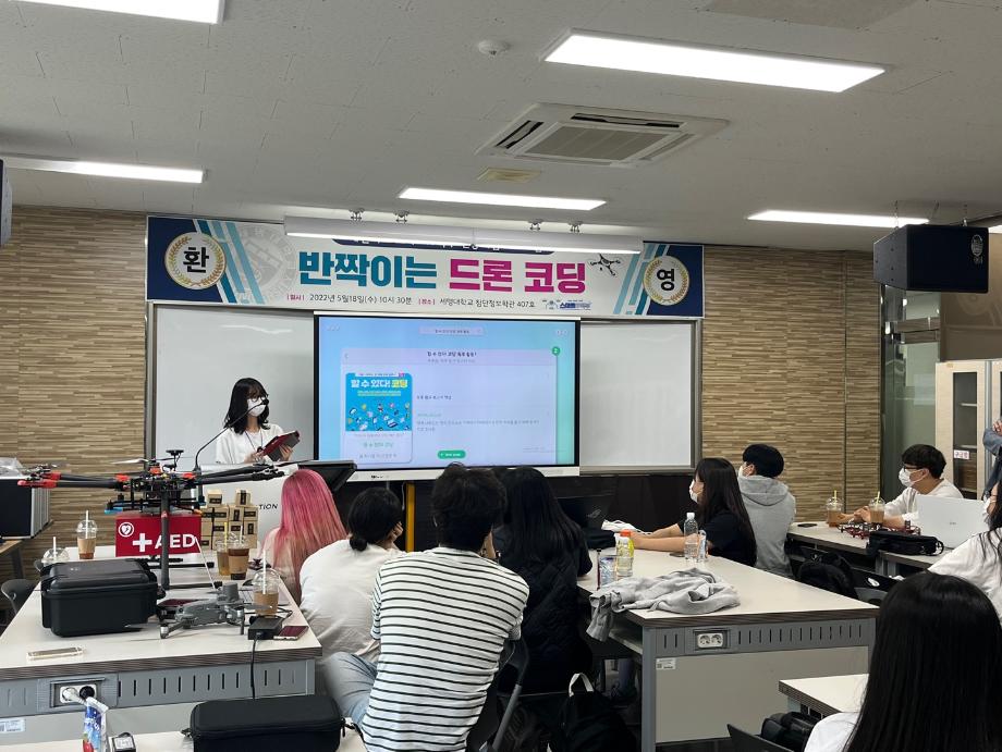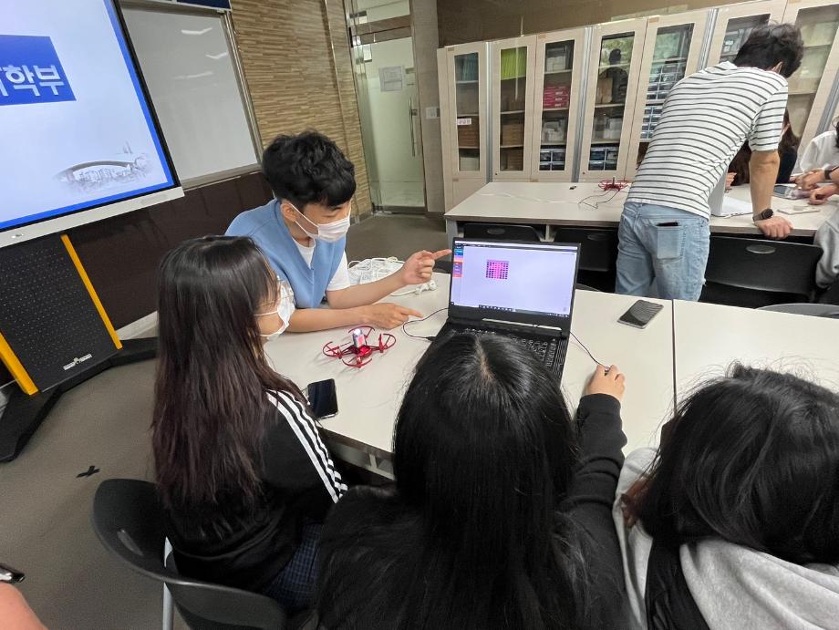 2022.05.18일 오전 10시30분부터 오후4시까지 첨단정보학관 407호에서 중등교육 연계프로그램(프리칼리지)이 시행되었다.