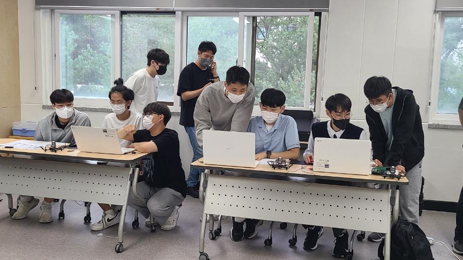 본문 시작 홈으로 SMIT 소식 SMIT 소개 SMIT 교육 SMIT 취업 SMIT 소식 SMIT 입학 홈페이지가이드 갤러리 공지사항 갤러리 경진대회 동아리 갤러리 페이스북 트위터 프린트 스마트IT학부 제천고등학교와 자연이공 과학 DCT프로젝트 특강 시행 스마트IT학부 4861 2022-09-16 2022.09.14(수) 첨단정보학관 406호에서 제천고등학교와 자연이공 과학 DCT프로젝트 특강을 시행했다. 제천고등학교 1학년 제천고등학교 과학반 실험실습동아리 학생 12명이 참여했다. 코딩으로 드론을 날리는 활동을 했으며, 학부학생들이 참여했다. 학생들에게 스마트IT학부를 홍보하고 입학홍보를 하는 유익한 시간이었다. 목록 이전스마트IT학부 일보 다음 스마트IT학부 신입생 환영기념 체육대회 개최 담당부서 : 스마트IT학부 담당자 : - 연락처 : 043-649-1275 최종수정일 : 2024-10-26 만족도조사 만족도 조사 이 페이지에서 제공하는 정보에 대하여 만족하시나요? 매우만족 만족 보통 불만족 매우불만족