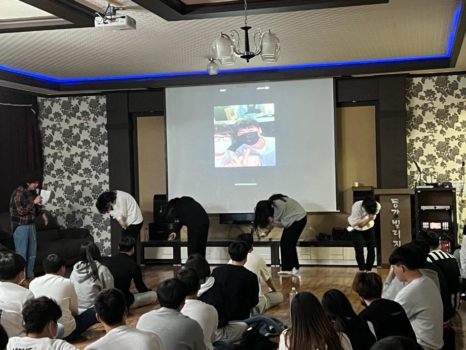 본문 시작 홈으로 SMIT 소식 SMIT 소개 SMIT 교육 SMIT 취업 SMIT 소식 SMIT 입학 홈페이지가이드 갤러리 공지사항 갤러리 경진대회 동아리 갤러리 페이스북 트위터 프린트 스마트IT학부 학부MT개최 스마트IT학부 5019 2022-11-10 스마트IT학부는 2022.11.10(목)~11.11(금) 이틀동안 학부엠티를 다녀왔다. 영월 동강빌리지로 재학생 약40여명이 다녀왔다. 야외에서 피구, 족구 등 스포츠 게임을 한 후 교수님들과 바베큐 파티를 했다. 저녁식사 후 실내 레크레이션이 이루어졌으며, 추억의 게임과 여러가지 게임들이 진행 되었다. 학생들 모두 즐거운 시간을 보냈으며, 선 후배간 단합을 이룰 수 있었다. 목록 이전청주 양청고등학교 중등교육 연계프로그램 시행 다음 스마트IT학부 농활활동 시행 담당부서 : 스마트IT학부 담당자 : - 연락처 : 043-649-1275 최종수정일 : 2024-10-26 만족도조사 만족도 조사 이 페이지에서 제공하는 정보에 대하여 만족하시나요? 매우만족 만족 보통 불만족 매우불만족