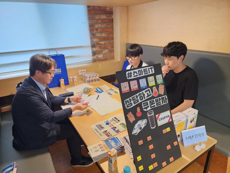 본문 시작 홈으로 SMIT 소식 SMIT 소개 SMIT 교육 SMIT 취업 SMIT 소식 SMIT 입학 홈페이지가이드 갤러리 공지사항 갤러리 경진대회 동아리 갤러리 페이스북 트위터 프린트 세명고등학교 입시박람회 시행 스마트IT학부 5190 2023-07-17 스마트IT학부는 2023.07.13(목) 세명고등학교에서 진행하는 세명고 박람회에 참가하였다. 학생들이 자유롭게 입시상담 부스에 방문하여 스마트IT학부 입시 등에 대하여 조면균 교수님과 상담을 하였다. 상담을 받은 학생에 한하여 상품 경품을 진행하였다. 세명고 학생들에게 입시와 취업 전망 등에 대해 설명하는 유익한 시간이었다. 목록 이전스마트IT학부 제천제일고 내비게이션 특강 시행 다음 한상익 교수님 '산학협력단 감사의 글' 수여 담당부서 : 스마트IT학부 담당자 : - 연락처 : 043-649-1275 최종수정일 : 2024-10-26 만족도조사 만족도 조사 이 페이지에서 제공하는 정보에 대하여 만족하시나요? 매우만족 만족 보통 불만족 매우불만족