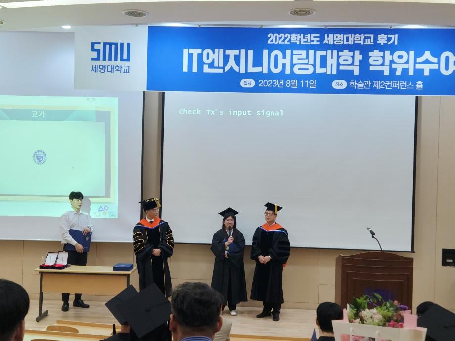 본문 시작 홈으로 SMIT 소식 SMIT 소개 SMIT 교육 SMIT 취업 SMIT 소식 SMIT 입학 홈페이지가이드 갤러리 공지사항 갤러리 경진대회 동아리 갤러리 페이스북 트위터 프린트 스마트IT학부 2022학년도 후기 학위수여식 스마트IT학부 7367 2023-08-11 스마트IT학부는 08월 11일(금) 학술관 102호에서 후기 학위수여식을 개최하였다. 후기 학위수여식은 IT엔지니어링 단과대학 주관으로 진행되었으며 스마트IT학부 6명의 졸업생이 학위를 수여받았다. 학위수여식에서 IT엔지니어링 단과대학 이완건 학장님과 총장님의 축사가 이루어졌다. 목록 이전스마트IT학부, "새온 자율주행 자동차 AI 미션 챌린지" 입상 다음 2023학년도 자기설계 해외배낭연수 담당부서 : 스마트IT학부 담당자 : - 연락처 : 043-649-1275 최종수정일 : 2024-10-26 만족도조사 만족도 조사 이 페이지에서 제공하는 정보에 대하여 만족하시나요? 매우만족 만족 보통 불만족 매우불만족