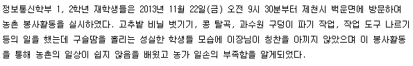 본문 시작 홈으로 SMIT 소식 SMIT 소개 SMIT 교육 SMIT 취업 SMIT 소식 SMIT 입학 홈페이지가이드 갤러리 공지사항 갤러리 경진대회 동아리 갤러리 페이스북 트위터 프린트 정보통신학부 봉사활동 정보통신학부 7890 2013-12-03 정보통신학부, ETRI&KISTI 견학 목록 이전정보통신학부, 농촌 봉사활동 실시 다음 정보통신학부, 취업박람회 견학 담당부서 : 스마트IT학부 담당자 : - 연락처 : 043-649-1275 최종수정일 : 2024-10-26 만족도조사 만족도 조사 이 페이지에서 제공하는 정보에 대하여 만족하시나요? 매우만족 만족 보통 불만족 매우불만족