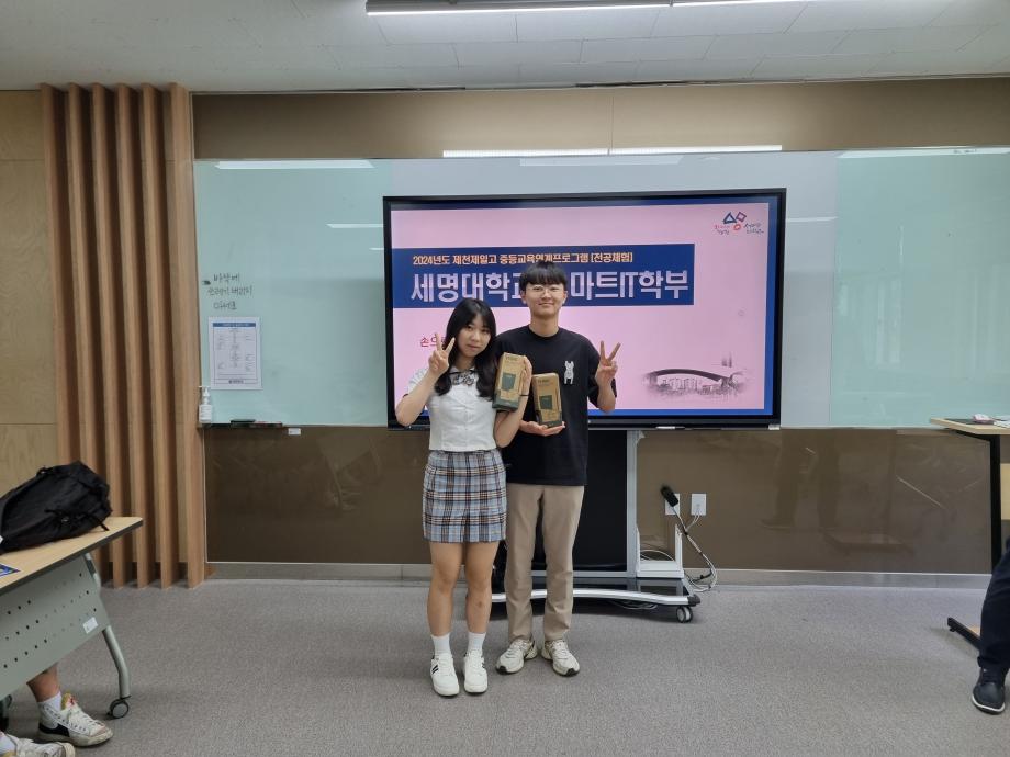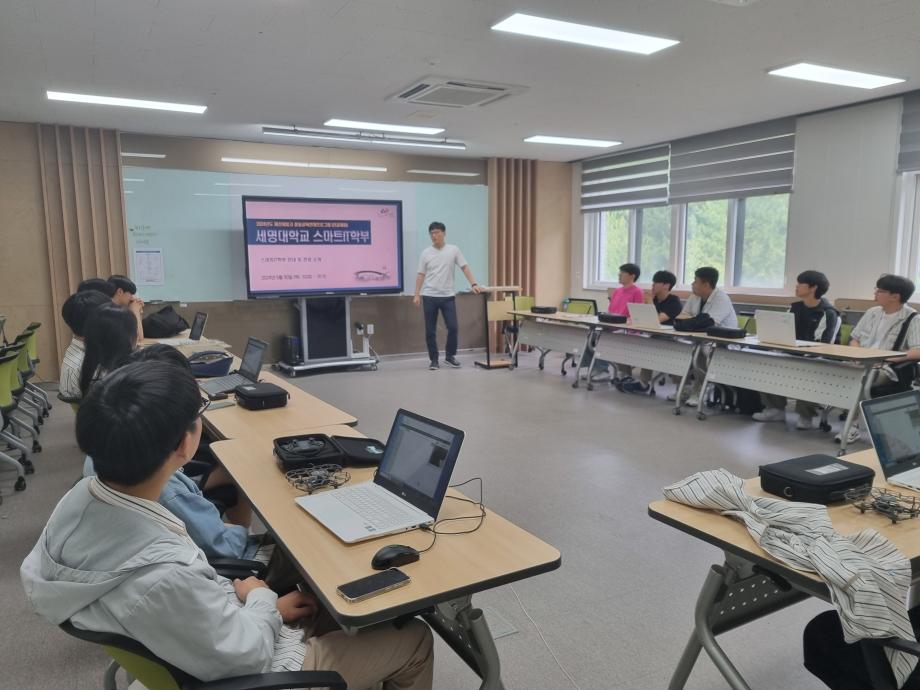본문 시작 홈으로 SMIT 소식 SMIT 소개 SMIT 교육 SMIT 취업 SMIT 소식 SMIT 입학 홈페이지가이드 갤러리 공지사항 갤러리 경진대회 동아리 갤러리 페이스북 트위터 프린트 제천제일고 전공체험활동!! 스마트IT학부 2674 2024-06-03 안녕하세요 세명대학교 스마트IT학부입니다☺ 2024년 5월 30일에 제천제일고등학교 학생들의 전공 체험 활동을 진행하였습니다! 제일고등학교에서 온 학생들의 전공체험을 위해 코딩 및 드론 체험 진행했습니다. 잘 따라와준 학생들에게는 소정의 상품도 증정하였던 매우 열정적인 시간이었습니다!❤️🔥❤️🔥 함께한 친구들 모두 세명대에서 다시 만날 수 있길 바라요🤗 목록 이전2024 부트캠프 시행 다음 2024학년도 졸업작품 전시회 개최 담당부서 : 스마트IT학부 담당자 : - 연락처 : 043-649-1275 최종수정일 : 2024-10-26 만족도조사 만족도 조사 이 페이지에서 제공하는 정보에 대하여 만족하시나요? 매우만족 만족 보통 불만족 매우불만족