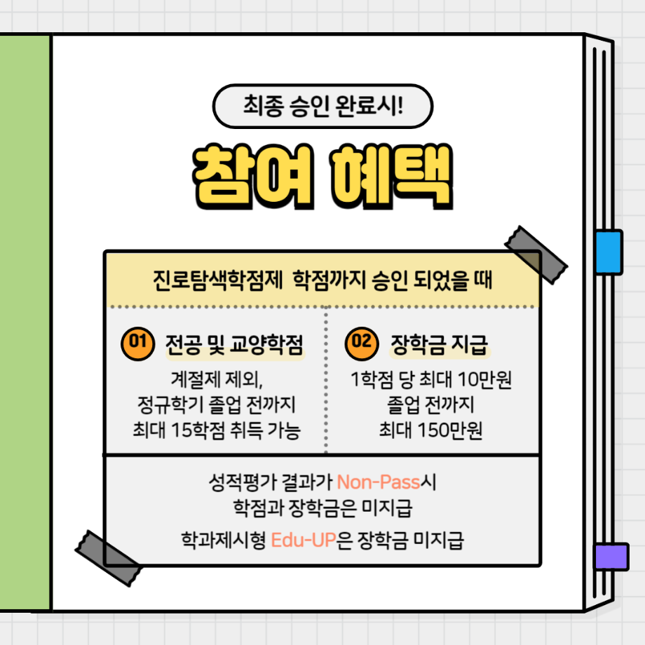 본문 시작 홈으로 SMIT 소식 SMIT 소개 SMIT 교육 SMIT 취업 SMIT 소식 SMIT 입학 홈페이지가이드 갤러리 공지사항 갤러리 경진대회 동아리 갤러리 페이스북 트위터 프린트 2024-2학기 진로탐색학점 스마트IT학부 2442 2024-07-17 2024학년도 2학기 진로탐색 학점제 목록 이전제천고등학교 전공체험활동❗❗ 다음 ★2024학년도 2학기 팝업스토어 신청자 모집★ 담당부서 : 스마트IT학부 담당자 : - 연락처 : 043-649-1275 최종수정일 : 2024-10-26 만족도조사 만족도 조사 이 페이지에서 제공하는 정보에 대하여 만족하시나요? 매우만족 만족 보통 불만족 매우불만족
