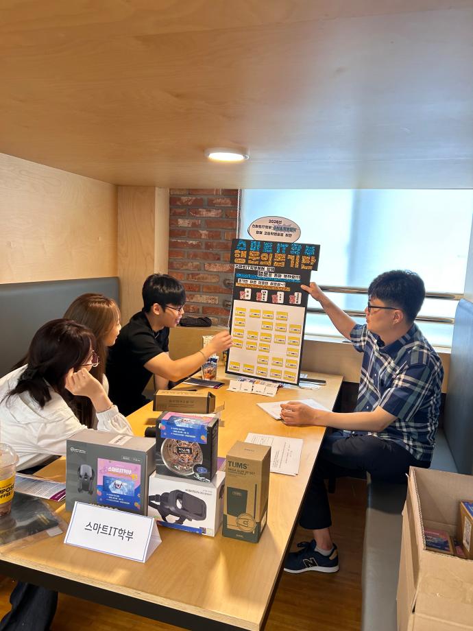 본문 시작 홈으로 SMIT 소식 SMIT 소개 SMIT 교육 SMIT 취업 SMIT 소식 SMIT 입학 홈페이지가이드 갤러리 공지사항 갤러리 경진대회 동아리 갤러리 페이스북 트위터 프린트 2025 세명고등학교 입시박람회 참여 스마트IT학부 1577 2025-07-16 스마트IT학부는 2025.07.15(화) 세명고등학교에서 진행하는 세명고 박람회에 참가하였습니다! 학생들이 자유롭게 입시상담 부스에 방문하여 스마트IT학부 입시 등에 대하여 한상익 교수님과 상담을 진행하였고, 상담을 받은 학생에 한하여 상품 경품 뽑기 참여기회를 주었습니다! 세명고 학생들에게 입시와 취업 전망 등에 대해 설명하는 유익한 시간이었습니다! 목록 이전CHARM인증제를 알려줘!⭐️ 다음 예비군훈련에 참가하는 학생(예비군)의 학업보장 담당부서 : 스마트IT학부 담당자 : - 연락처 : 043-649-1275 최종수정일 : 2024-10-26 만족도조사 만족도 조사 이 페이지에서 제공하는 정보에 대하여 만족하시나요? 매우만족 만족 보통 불만족 매우불만족