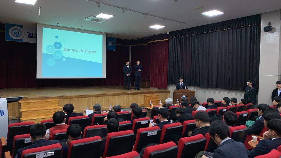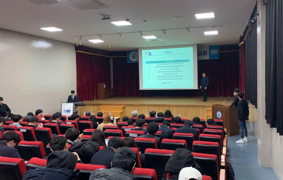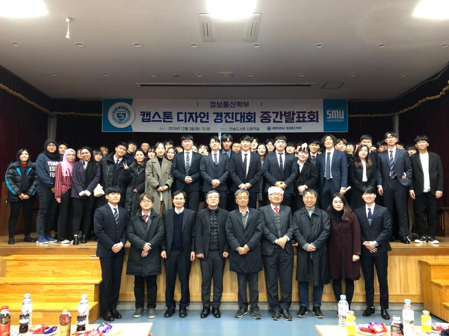 본문 시작 홈으로 SMIT 소식 SMIT 소개 SMIT 교육 SMIT 취업 SMIT 소식 SMIT 입학 홈페이지가이드 갤러리 공지사항 갤러리 경진대회 동아리 갤러리 페이스북 트위터 프린트 2019학년도 캡스톤디자인경진대회(졸업작품전시회) 중간발표회 정보통신학부 9296 2019-12-26 2019년 12월 03일 교내 민송도서관 1층 시청각실에서 정보통신학부 캡스톤 디자인 경진대회 중간발표회를 진행하였습니다. 졸업작품 결과를 만들기 이전 중간단계로 3학년 학생들이 교수님 및 재학생들을 대상으로 지금까지 이루어낸 결과물을 발표 하는 뜻깊은 자리였습니다. 작품발표를 보며, 1,2학년 재학생들은 기존수업을 바탕으로 하여 IT업계의 전문지식을 쌓는 좋은 기회였습니다. 목록 이전2019학년도 세명대학교 캡스톤디자인 경진대회 대상 및 최우수상 수상 다음 2019학년도 4학년 재학생 50% 정보처리기사 자격증 취득 담당부서 : 스마트IT학부 담당자 : - 연락처 : 043-649-1275 최종수정일 : 2024-10-26 만족도조사 만족도 조사 이 페이지에서 제공하는 정보에 대하여 만족하시나요? 매우만족 만족 보통 불만족 매우불만족