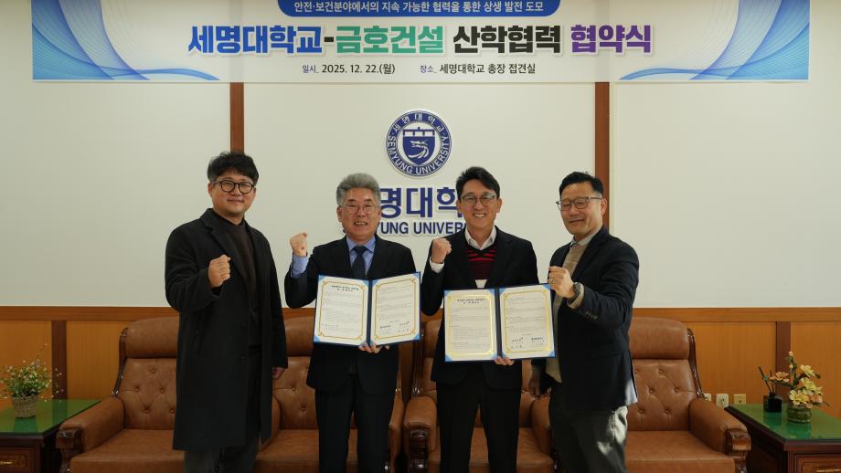 제천 세명대학교가 금호건설과 지난 22일 학생 현장실습 확대 및 안전·보건관리 역량 강화를 위한 산학협력 업무협약(MOU)을 체결하고 실무 중심 인재 양성을 위한 협력을 약속했다.