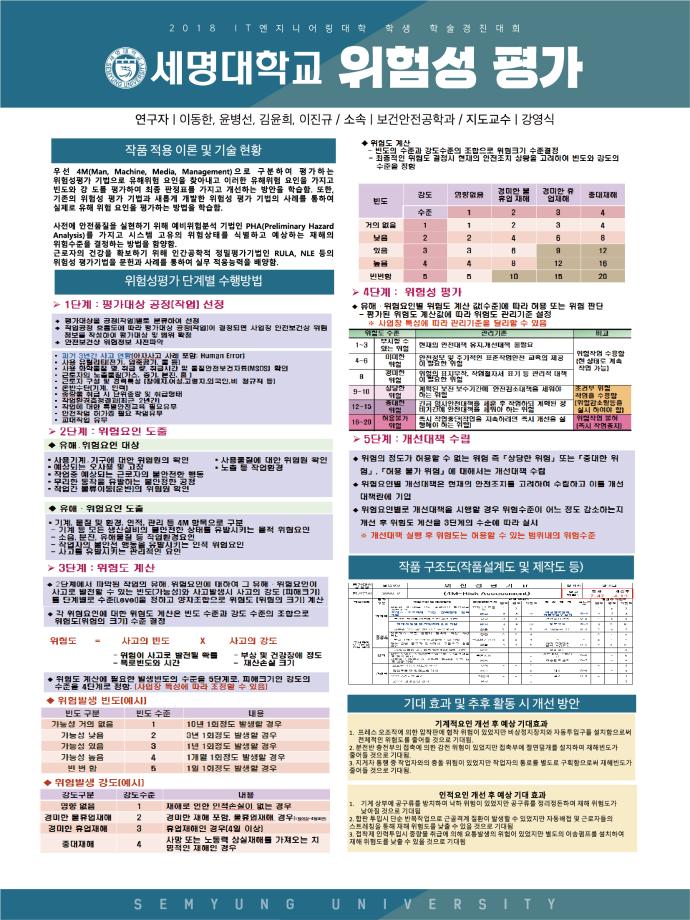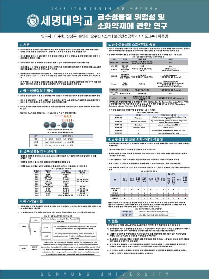 본문 시작 홈으로 커뮤니티 학과소개 진로 및 취업 교수소개 학과과정 커뮤니티 홈페이지가이드 포토갤러리 학과공지 학사일정 포토갤러리 학생회 학과영상 보건안전학과 인스타 보건안전학과 블로그 포토갤러리 페이스북 트위터 프린트 IT엔지니어링대학 학술발표대회 수상작 보건안전공학과 8053 2018-11-20 2018년 11월 1일 IT엔지니어링대학 학술발표대회 수상작 - 금 상 : Ethanol의 화재 · 폭발특성치의 측정 및 예측 양유환, 이원희, 김민정 - 장려상 : 금수성물질의 위험성과 소화약제에 관한 연구 이주헌,진상우,손민경,오수빈 -장려상 : 위험성 평가 이동한, 이진규, 윤병선, 김윤희 목록 이전제1회 IT엔지니어링대학 학술발표대회 다음 제 25회 세명대학교 보건안전공학과 학위수여식 담당부서 : 보건안전학과 담당자 : - 연락처 : 043-649-1777 최종수정일 : 2024-10-26 만족도조사 만족도 조사 이 페이지에서 제공하는 정보에 대하여 만족하시나요? 매우만족 만족 보통 불만족 매우불만족