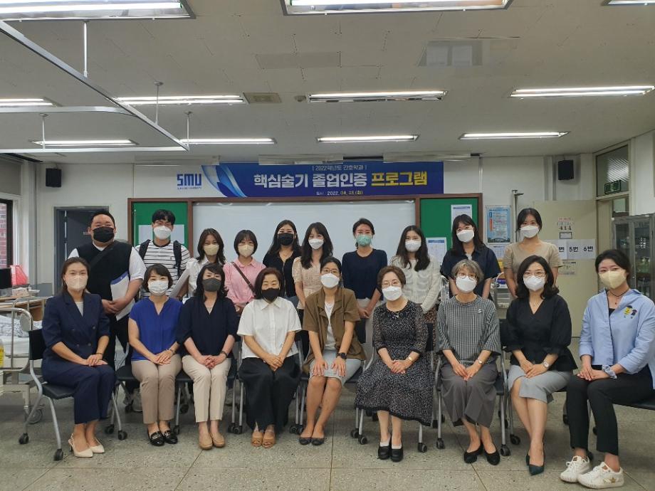 본문 시작 홈으로 커뮤니티 학과소개 교수소개 교육과정 학과소식 학과특성화 사업 커뮤니티 홈페이지가이드 포토갤러리 학사일정 포토갤러리 학생회 학과동아리 학과 취업정보 동창회 학과운영개선의견 발전기금 포토갤러리 페이스북 트위터 프린트 2022학년도 핵심술기 졸업인증 프로그램 간호학과 4018 2022-08-29 2022학년도 핵심술기 졸업인증 프로그램 - 일시 : 2022.08.23.(화) 09:00 ~ 17:00 - 장소 : 이학관 407호, 414호, 416호 - 대상 : 간호학과 4학년 졸업예정자 104명 간호학과 졸업생을 초청하여 모교방문의 날 행사 및 4학년 졸업예정자를 대상으로 핵심술기 졸업인증 프로그램을 진행하였다. 목록 이전2021학년도 기초 실습역량 강화 프로그램(카데바 실습) 다음 2022학년도 국내·외 보건의료정책변화 특강 담당부서 : 간호학과 담당자 : - 연락처 : 043-649-1357 최종수정일 : 2024-10-26 만족도조사 만족도 조사 이 페이지에서 제공하는 정보에 대하여 만족하시나요? 매우만족 만족 보통 불만족 매우불만족