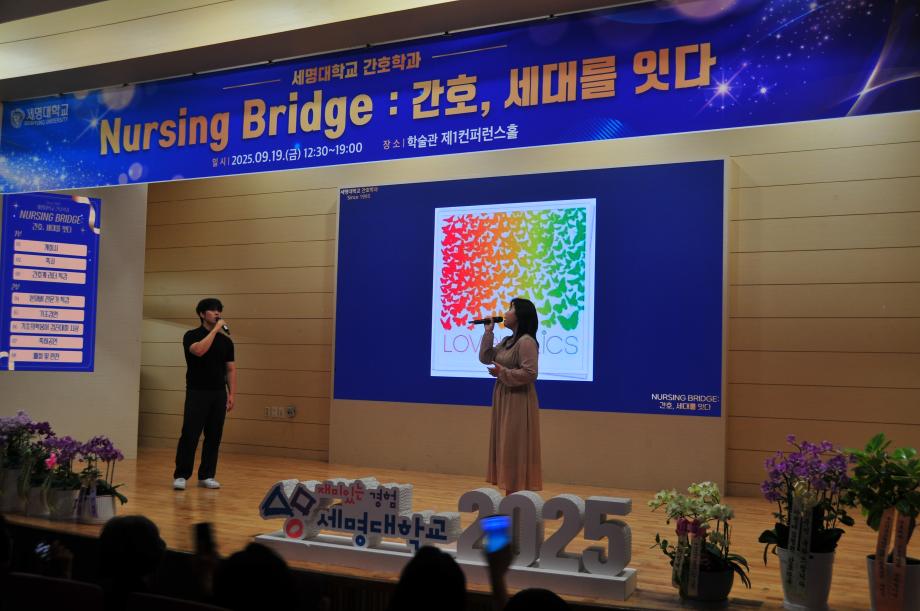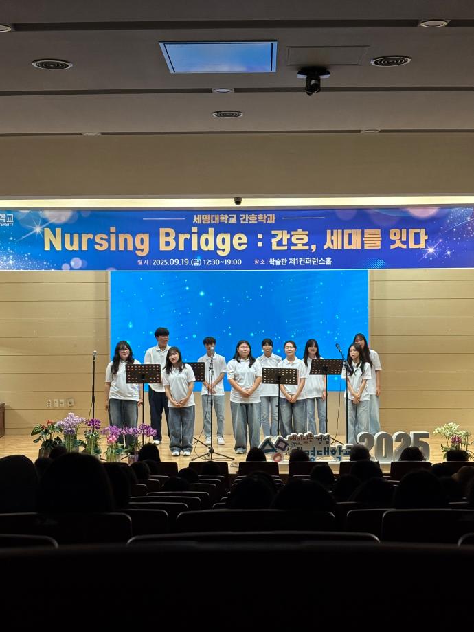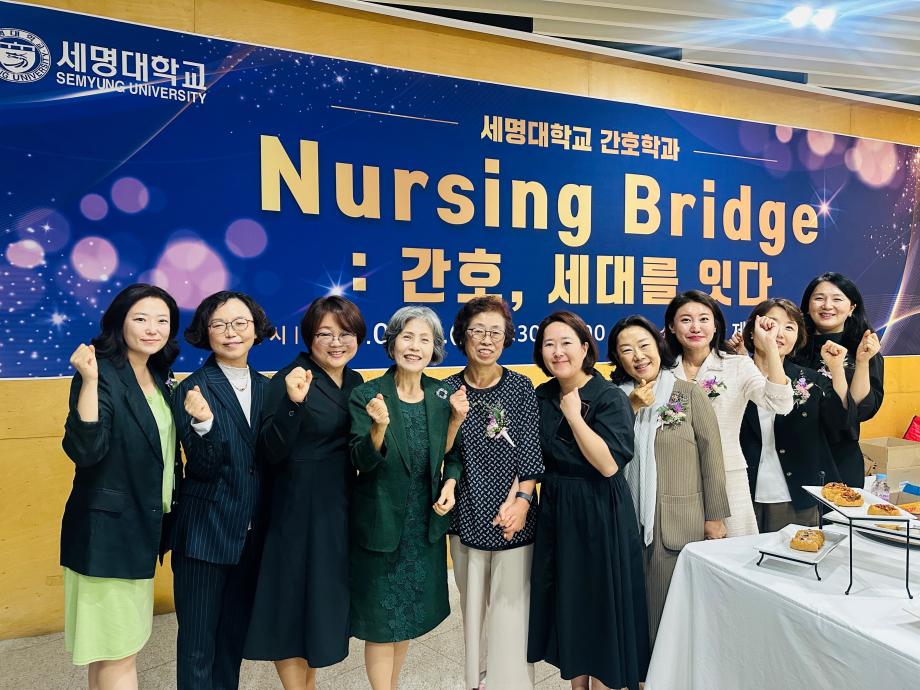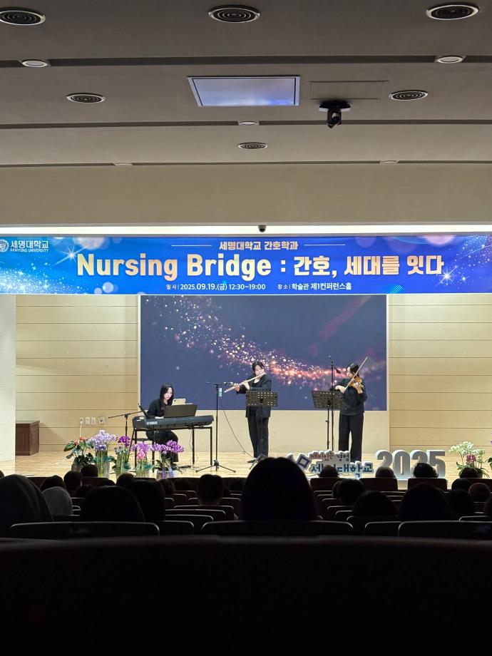 본문 시작 홈으로 커뮤니티 학과소개 교수소개 교육과정 학과소식 학과특성화 사업 커뮤니티 홈페이지가이드 포토갤러리 학사일정 포토갤러리 학생회 학과동아리 학과 취업정보 동창회 학과운영개선의견 발전기금 포토갤러리 페이스북 트위터 프린트 🎉 세명대학교 간호학과 30주년 기념행사 🎉 Nursing Bridge: 간호, 세대를 잇다 간호학과 1891 2025-09-24 이번 행사에는 신경림 대한간호협회장님의 기조강연과 정승교 명예교수님의 특별강연이 있었습니다. 권동현 총장님을 비롯한 각 부처 처장님, 명지병원 병원장님, 간호부장님 등 여러 기관에서도 직접 참여해주시고, 축하영상 및 화환을 보내주시어 자리가 더욱 빛났습니다. 1기 졸업생부터 현 재학생까지 500여명이 한뜻으로 모여 뜻깊은 시간을 보냈습니다. 과거와 현재, 그리고 미래의 간호를 잇는 ‘Nursing Bridge’ 그 감동의 순간들입니다. 목록 이전🎓 [2025학년도 핵심간호술 졸업인증제 – 선배님들의 모교 방문] 다음 2025년 2학기 간호학과 교학간담회 담당부서 : 간호학과 담당자 : - 연락처 : 043-649-1357 최종수정일 : 2024-10-26 만족도조사 만족도 조사 이 페이지에서 제공하는 정보에 대하여 만족하시나요? 매우만족 만족 보통 불만족 매우불만족