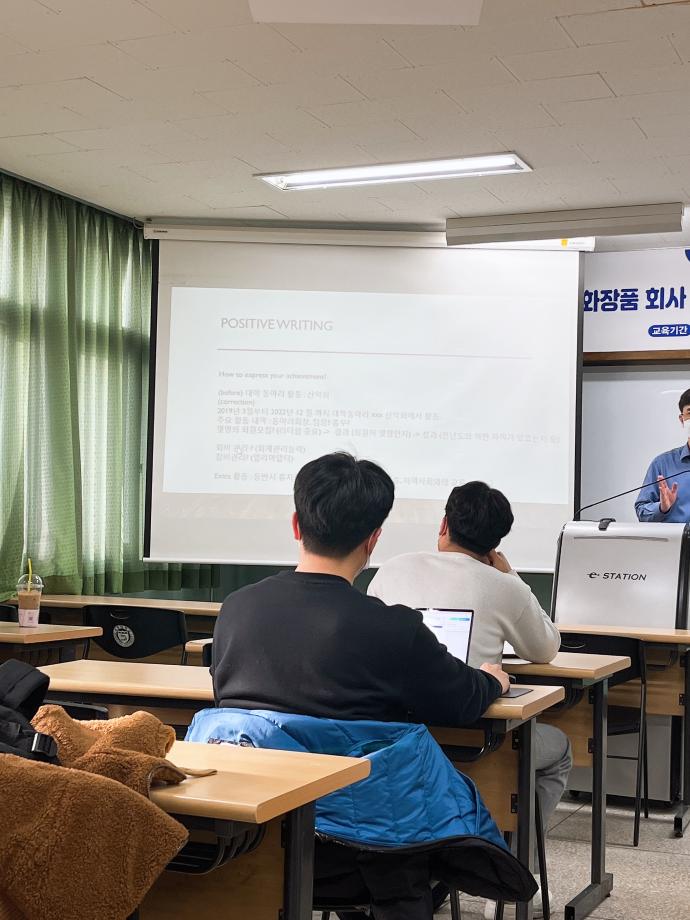 본문 시작 홈으로 커뮤니티 학과소개 학과과정 대학원 커뮤니티 연구동아리 홈페이지가이드 포토갤러리 학과공지 채용정보 학과일정 포토갤러리 유튜브 인스타그램 취업현황 학생회 조직도 졸업생 숏터뷰 포토갤러리 페이스북 트위터 프린트 [취업특강] 화장품 회사 취업 대비 carrer development 과정 화장품뷰티학부 2857 2022-03-17 2022.03.16(수) 에 화장품뷰티학부 3,4학년 학생들 대상으로 취업특강이 진행되었습니다. 특강 내용은 화장품 회사 취업 대비 carrer development 과정이며 학생들이 직접 쓴 자기소개서와 이력서를 가지고 특강에 참여하였습니다:) 목록 이전피부미용사 자격증 취득 특강(2월) 다음 [취업특강] 면접대비 이미지 메이킹 특강 담당부서 : 바이오코스메틱학과 담당자 : - 연락처 : 043-649-1638 최종수정일 : 2024-10-26 만족도조사 만족도 조사 이 페이지에서 제공하는 정보에 대하여 만족하시나요? 매우만족 만족 보통 불만족 매우불만족
