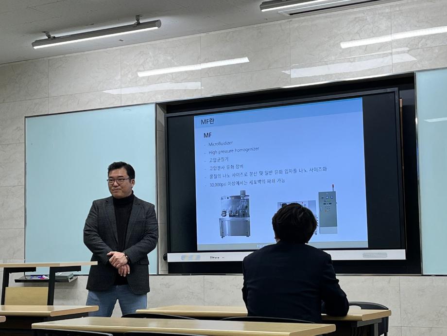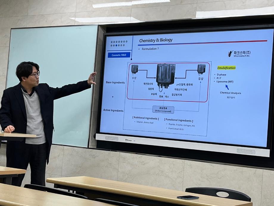 본문 시작 홈으로 커뮤니티 학과소개 학과과정 대학원 커뮤니티 연구동아리 홈페이지가이드 포토갤러리 학과공지 채용정보 학과일정 포토갤러리 유튜브 인스타그램 취업현황 학생회 조직도 졸업생 숏터뷰 포토갤러리 페이스북 트위터 프린트 화장품 제형화 기술지도 및 세미나 진행 화장품뷰티학부 3747 2023-03-13 안녕하세요 화장품학과입니다! 지난 10일(2023.03.10.)에 화장품 공유대학 연구세미나를 통해 화장품 전공 학생들에게 화장품 제형화 기술지도 및 세미나 행사를 진행하였습니다~ 이번 세미나에서는 (주)화코스텍 김성수 연구소장 "리포좀 등 에멀젼 유화 기술"에 대해서 설명해 주셨고, (주)에이치앤비 천종우 대표님께서 "마이크로 플루다이져 유화 기술"에 대해 세미나를 개최해 주셨습니다 :) 목록 이전2023 K-한방 정밀의료 국제포럼 안내 다음 충북바이오헬스산업혁신센터 혁신과 공유 성과발표회 캡스톤디자인경진대회 최우수상 수상 담당부서 : 바이오코스메틱학과 담당자 : - 연락처 : 043-649-1638 최종수정일 : 2024-10-26 만족도조사 만족도 조사 이 페이지에서 제공하는 정보에 대하여 만족하시나요? 매우만족 만족 보통 불만족 매우불만족