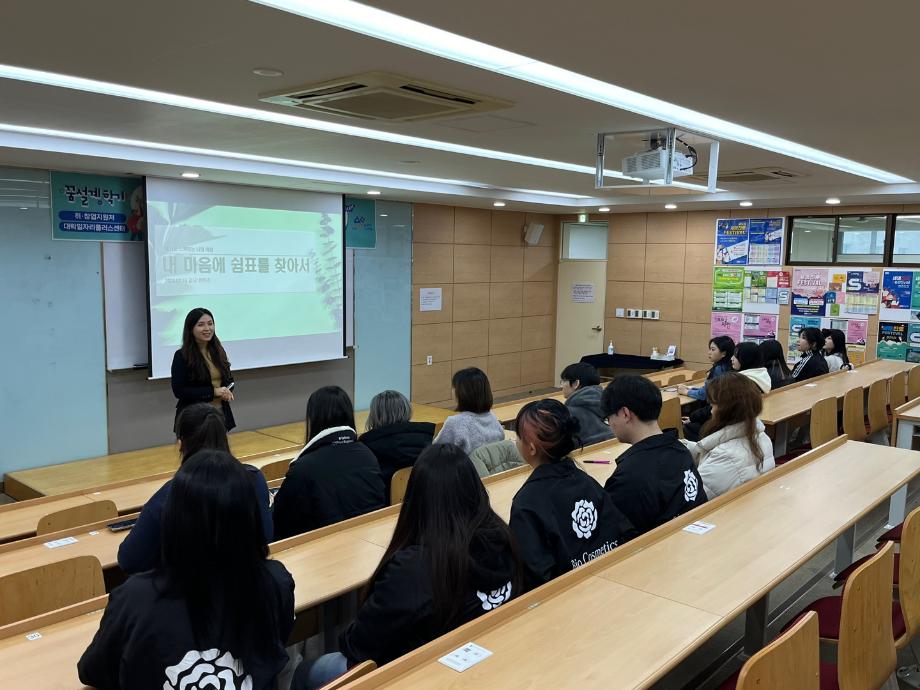 본문 시작 홈으로 커뮤니티 학과소개 학과과정 대학원 커뮤니티 연구동아리 홈페이지가이드 포토갤러리 학과공지 채용정보 학과일정 포토갤러리 유튜브 인스타그램 취업현황 학생회 조직도 졸업생 숏터뷰 포토갤러리 페이스북 트위터 프린트 2024학년도 바이오코스메틱학과 꿈설계학기 바이오코스메틱학과 2606 2024-02-22 세명대학교에서 2024년 2월 19일부터 21일까지 꿈설계학기를 진행하였습니다. 꿈설계학기동안 신입생들과 선후배 교수님과 소통하고 진로를 설계하며 전공에 관련한 화장품임상센터에서의 견학을 가지면서 학교를 알아가고 새로운 학우들과 서로 소통하는 시간을 가질 수 있었습니다. 목록 이전비교과프로그램 맞춤형화장품 오픈랩 행사 다음 2024학년도 보건바이오대학배 체육대회 담당부서 : 바이오코스메틱학과 담당자 : - 연락처 : 043-649-1638 최종수정일 : 2024-10-26 만족도조사 만족도 조사 이 페이지에서 제공하는 정보에 대하여 만족하시나요? 매우만족 만족 보통 불만족 매우불만족