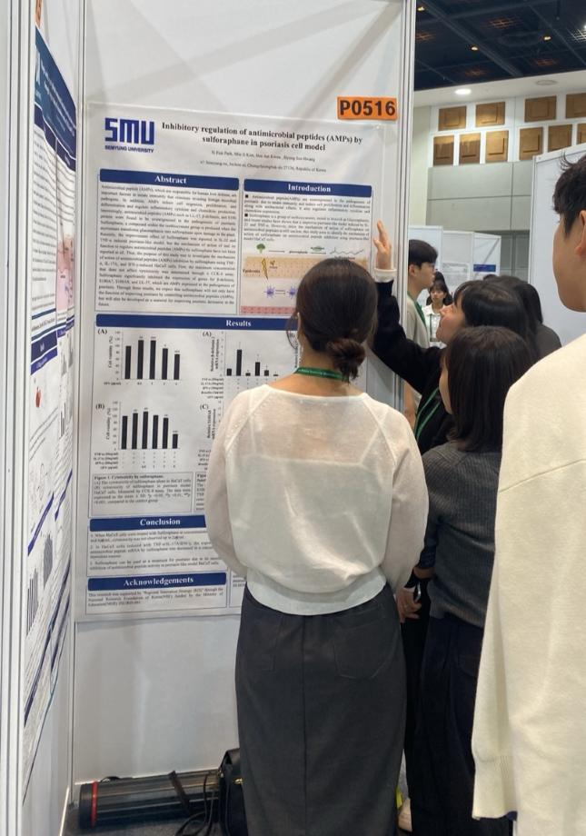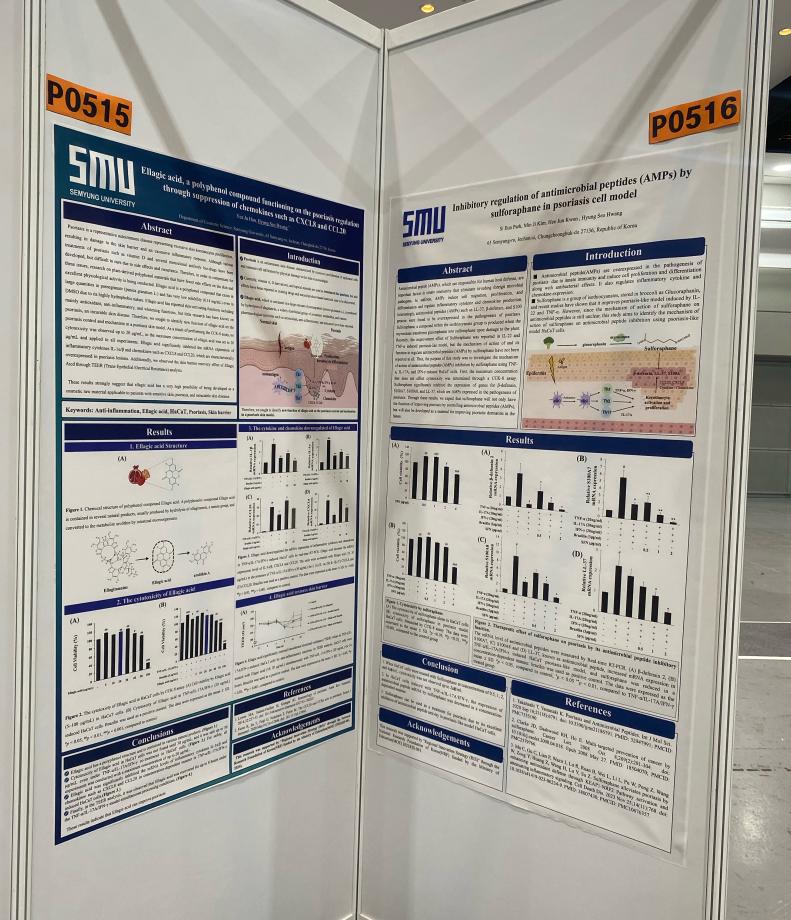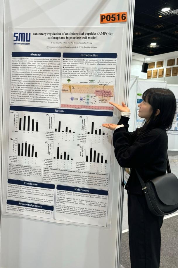 본문 시작 홈으로 커뮤니티 학과소개 학과과정 대학원 커뮤니티 연구동아리 홈페이지가이드 포토갤러리 학과공지 채용정보 학과일정 포토갤러리 유튜브 인스타그램 취업현황 학생회 조직도 졸업생 숏터뷰 포토갤러리 페이스북 트위터 프린트 2024 한국생물공학회 추계 학술발표대회 참가 바이오코스메틱학과 2470 2024-10-10 학회명 : 2024 KSBB Fall Meeting and International Symposium 일 자 : 2024.09.25(수)-27(금) 장 소 : 제주 ICC ‘건선 모델에서 Sulforaphane의 항균펩타이드 (AMPs) 억제 효능’과 ‘건선 모델에서 Ellagic acid의 케모카인 억제 효능‘의 연구를 주제로 박시은, 한예주 학생이 포스터 발표를 진행했습니다! 목록 이전제 32회 청룡축전 “향수 원데이 클래스 이벤트 부스 다음 2024 오송화장품뷰티산업엑스포 현장체험 담당부서 : 바이오코스메틱학과 담당자 : - 연락처 : 043-649-1638 최종수정일 : 2024-10-26 만족도조사 만족도 조사 이 페이지에서 제공하는 정보에 대하여 만족하시나요? 매우만족 만족 보통 불만족 매우불만족
