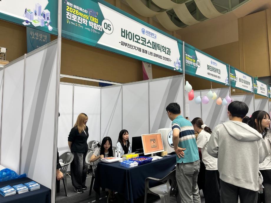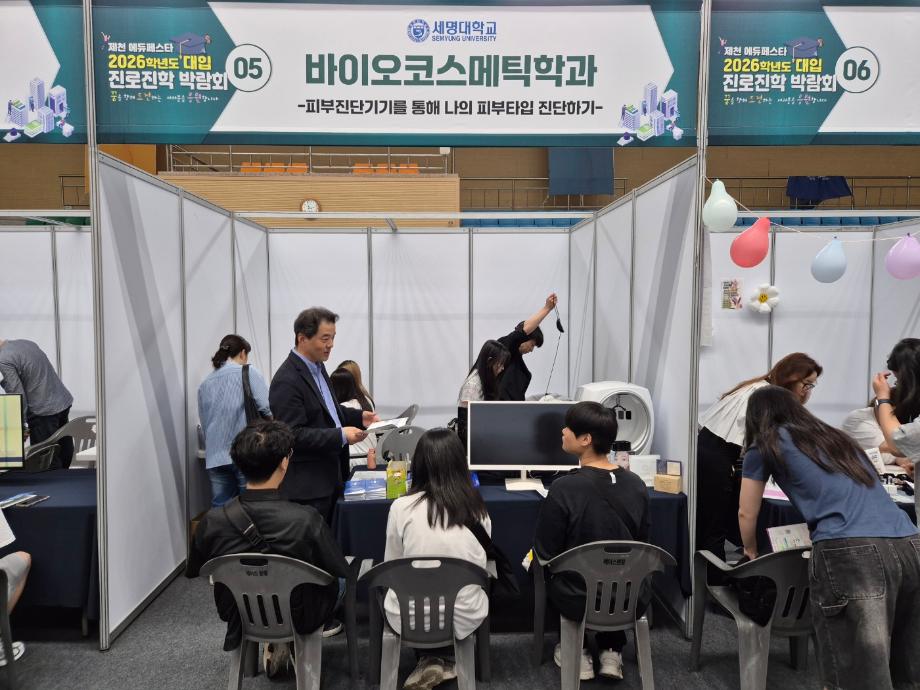 본문 시작 홈으로 커뮤니티 학과소개 학과과정 대학원 커뮤니티 연구동아리 홈페이지가이드 포토갤러리 학과공지 채용정보 학과일정 포토갤러리 유튜브 인스타그램 취업현황 학생회 조직도 졸업생 숏터뷰 포토갤러리 페이스북 트위터 프린트 2025학년도 제천대학입시박람회 바이오코스메틱학과 1852 2025-06-16 안녕하세요 바이오코스메틱학과입니다. 2025년 6월14일 토요일 세명대학교 체육관에서 제천 대학 입시박람회를 진행하였습니다. 세명대학교 바이오코스메틱학과에서는 개인맞춤형 화장품 체험으로 피부진단기기를 통해 개인별 피부타입 진단 체험과 DPPH assay실습을 통해 기능성 화장품 소재의 항산화 효과 체험과 학과 입시 상담을 진행하였습니다. 목록 이전제천 바이오밸리 테크노파크 스마트팩토리 현장견학 다음 2025학년도 아쿠아디테동아리 현장견학 담당부서 : 바이오코스메틱학과 담당자 : - 연락처 : 043-649-1638 최종수정일 : 2024-10-26 만족도조사 만족도 조사 이 페이지에서 제공하는 정보에 대하여 만족하시나요? 매우만족 만족 보통 불만족 매우불만족