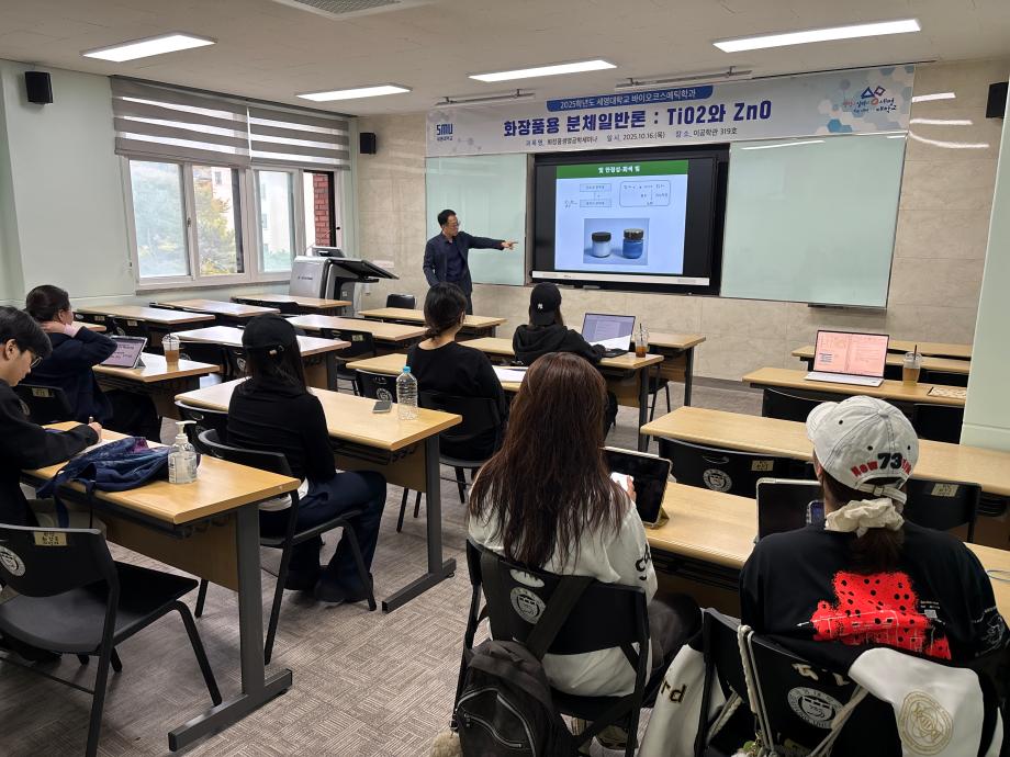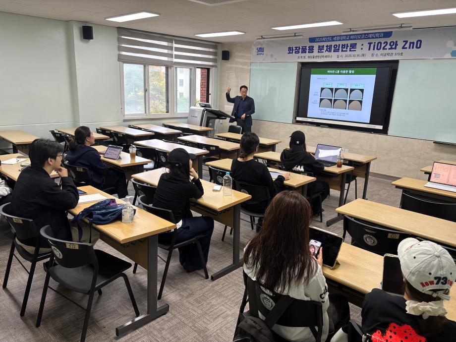 본문 시작 홈으로 커뮤니티 학과소개 학과과정 대학원 커뮤니티 연구동아리 홈페이지가이드 포토갤러리 학과공지 채용정보 학과일정 포토갤러리 유튜브 인스타그램 취업현황 학생회 조직도 졸업생 숏터뷰 포토갤러리 페이스북 트위터 프린트 2025학년도 3차 화장품생명공학세미나 바이오코스메틱학과 1340 2025-10-17 2025학년도 3차 화장품생명공학세미나를 진행했습니다. 목록 이전2025학년도 2차 S-BOOT 특강_Evolution of K-Beauty 다음 2025학년도 F.P.L 동아리 클렌징 오일 및 클렌징 밤 제조 실습 담당부서 : 바이오코스메틱학과 담당자 : - 연락처 : 043-649-1638 최종수정일 : 2024-10-26 만족도조사 만족도 조사 이 페이지에서 제공하는 정보에 대하여 만족하시나요? 매우만족 만족 보통 불만족 매우불만족