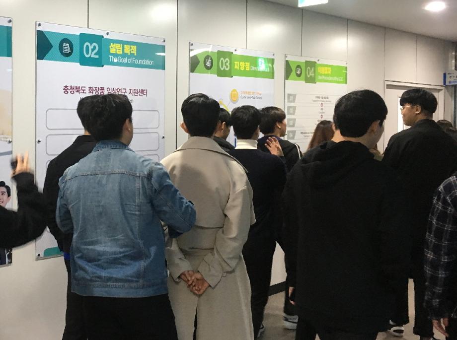 본문 시작 홈으로 커뮤니티 학과소개 학과과정 대학원 커뮤니티 연구동아리 홈페이지가이드 포토갤러리 학과공지 채용정보 학과일정 포토갤러리 유튜브 인스타그램 취업현황 학생회 조직도 졸업생 숏터뷰 포토갤러리 페이스북 트위터 프린트 2018 오송화장품뷰티산업 엑스포 참가 화장품뷰티생명공학부 8030 2018-10-24 작년에 이어 올해도 1,3학년 학생들과 오송화장품뷰티산업 엑스포에 참가하였습니다. 학생들 각자 피부 진단도 받아보고 다양한 화장품 샘플들을 경험하며 즐거운 시간을 가졌습니다. 충청북도화장품임상연구지원센터에도 들려 센터도 돌아보며 취업 목표의식 다지는 시간이었습니다 목록 이전제천중학교 중등교육 연계프로그램(전공체험) 이전의림여중 중등교육 연계프로그램(전공체험) 담당부서 : 바이오코스메틱학과 담당자 : - 연락처 : 043-649-1638 최종수정일 : 2024-10-26 만족도조사 만족도 조사 이 페이지에서 제공하는 정보에 대하여 만족하시나요? 매우만족 만족 보통 불만족 매우불만족