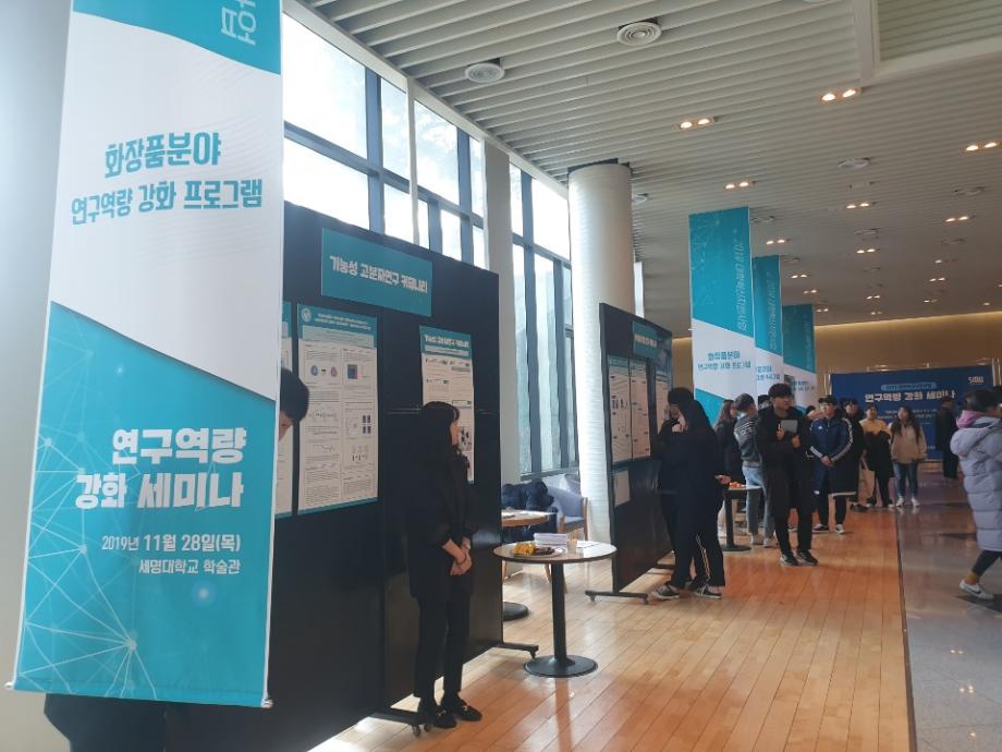 본문 시작 홈으로 커뮤니티 학과소개 학과과정 대학원 커뮤니티 연구동아리 홈페이지가이드 포토갤러리 학과공지 채용정보 학과일정 포토갤러리 유튜브 인스타그램 취업현황 학생회 조직도 졸업생 숏터뷰 포토갤러리 페이스북 트위터 프린트 2019학년도 연구역량 강화 세미나 화장품뷰티생명공학부 8035 2019-11-28 2019년 11월 28일, 학술관에서 연구역량 강화 세미나가 열렸습니다. 지역연계 5팀, 한방바이오 화장품분야 9팀으로 총 14팀의 연구 커뮤니티가 참여하였고, 학술관 102호에서는 대학혁지원사업과 관련하여 시행중인 [학생참여형 지역연계 연구 프로그램]과 [힌방바이오, 화장품분야 연구역량 강화사업]의 사업성과를 발표하는 시간이 있었습니다. 학술관 로비에서는 사업 성과에 대한 포스터세션을 운영하였습니다. 목록 이전“아쿠아디테”2019 대한화장품학회 추계학술대회 참가 다음 제1회 화장품뷰티생명공학부 전공체험 워크샵 담당부서 : 바이오코스메틱학과 담당자 : - 연락처 : 043-649-1638 최종수정일 : 2024-10-26 만족도조사 만족도 조사 이 페이지에서 제공하는 정보에 대하여 만족하시나요? 매우만족 만족 보통 불만족 매우불만족