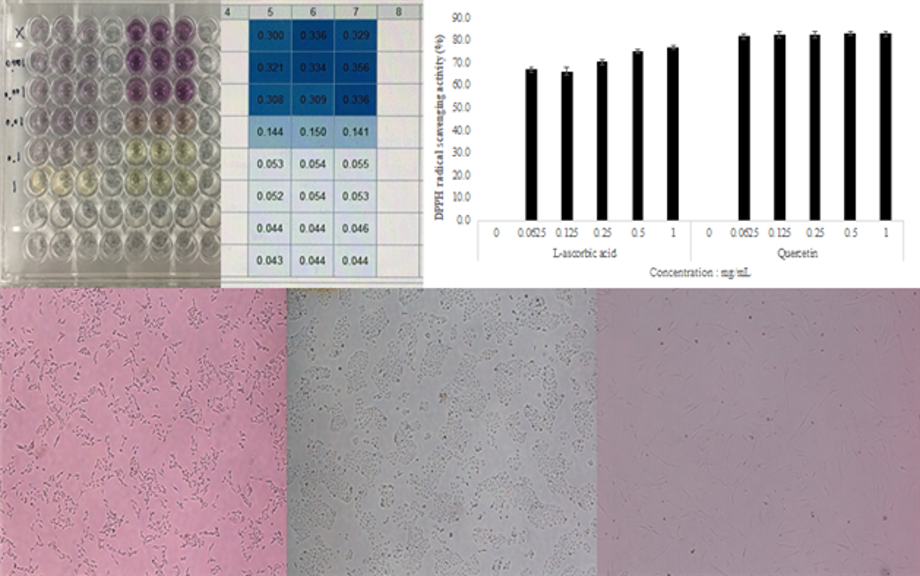 피부 생화학실습을 주제로 하여 항산화 효력 시험(DPPH assay), HaCaT(인간 각질형성세포) / B16F10(마우스 흑색종 세포) / RAW264.7(마우스 대식세포)과 같은 피부세포 배양, 이를 이용한 세포 생존율 시험(CCK8 assay), 항염증 효력 시험(NO assay) 등을 배웠습니다.
