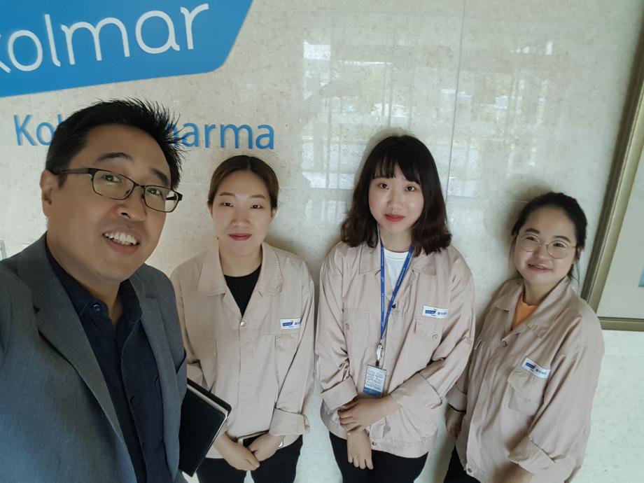 2019년 6월 24일부터 4주간 세명대학교 바이오식품산업학부 학생 3명이 실습중인 제천 바이오밸리 내 콜마파마(주)를 해당 기업 지도교수님이 방문하였습니다. 김*경, 김*들 및 전*정 3학생은 콜마파마(주)회사 옆의 기숙사에 머물며, 회사에서 마련한 실습생 교육 프로그램에 따라 실습하고 있습니다. 콜마파마(주)는 국내 최대의 OEM, ODM기업으로 충청북도 제천시 바이오밸리내 소재하고 있는 KGMP 공장은 고형제, 경질캅셀제, 연질캅셀제, 외용산제의 생산라인을 운영하고 있습니다. 실습학생들은 4주동안 해당 기업의 각 부서에서 실습하며, 제품생산에 필요한 다양한 기술을 연마하게 됩니다.