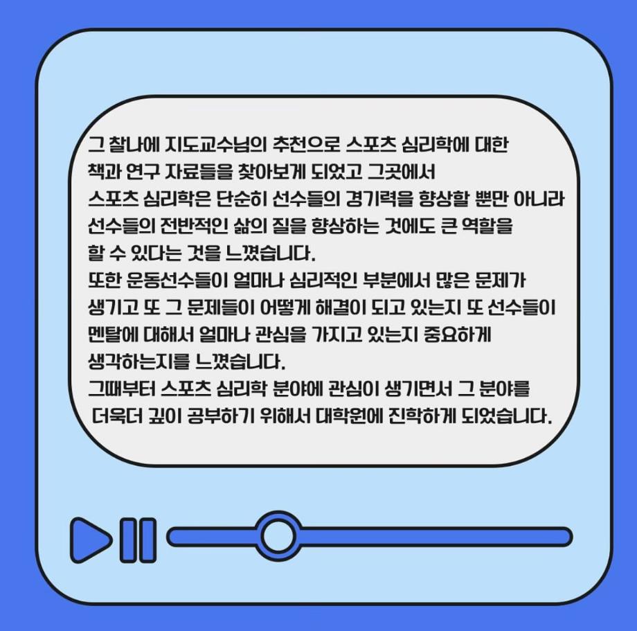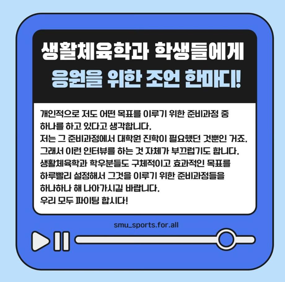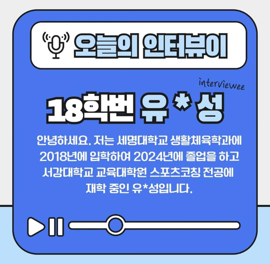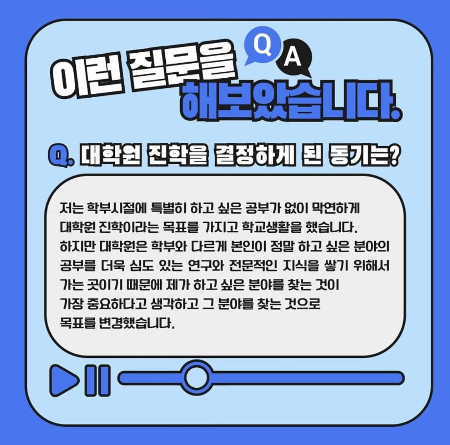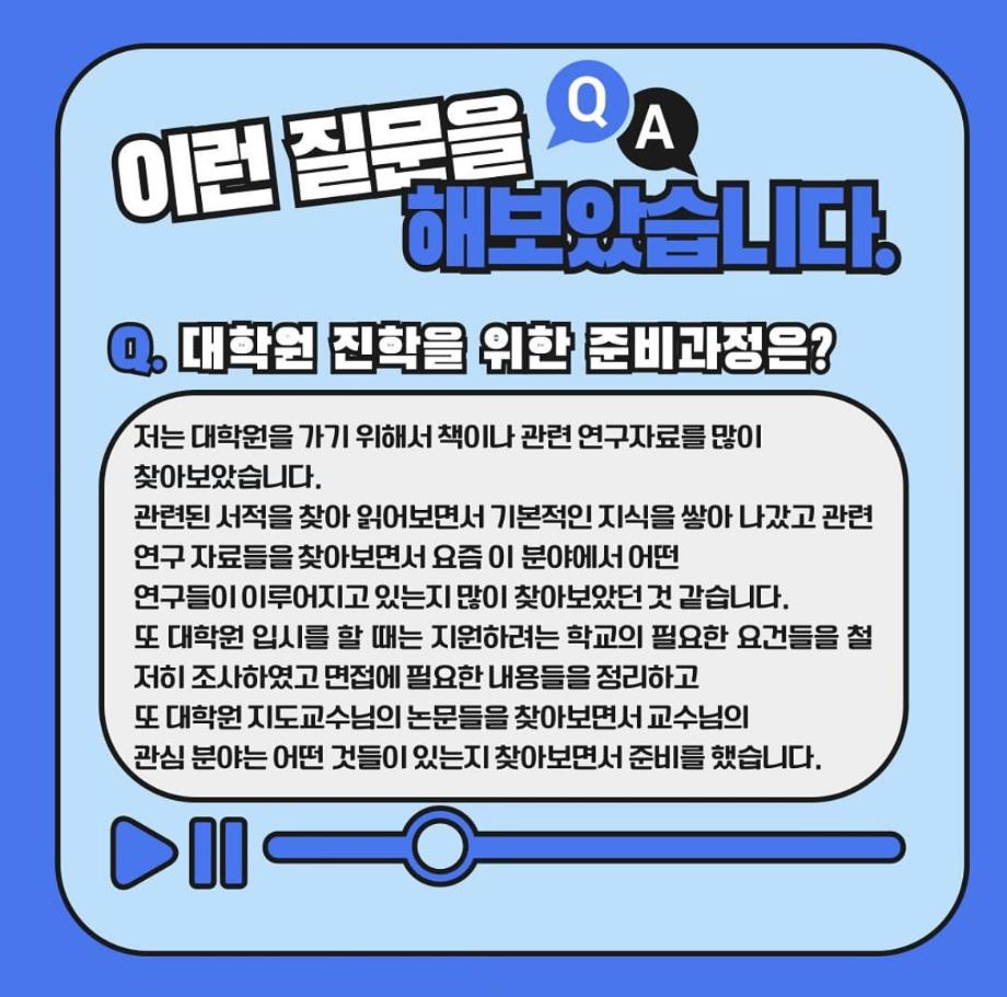 본문 시작 홈으로 커뮤니티SNS 학과소개 진로취업사례 입학안내 교육과정 커뮤니티SNS 홈페이지가이드 학과행사갤러리 학과공지 열린정보SNS 학과동아리 학과행사갤러리 학과MOU 학생회조직도 학과연혁 동문회조직도 학과행사갤러리 페이스북 트위터 프린트 대표 진학자 인터뷰 생활체육학과 1815 2024-07-17 23학년도 졸업생 중 대표 진학자와 인터뷰를 진행했습니다. 목록 이전23학년도 졸업생 진학, 취업사례 다음 대표 취업자 인터뷰 담당부서 : 생활체육학과 담당자 : - 연락처 : 043-469-1289 최종수정일 : 2024-10-26 만족도조사 만족도 조사 이 페이지에서 제공하는 정보에 대하여 만족하시나요? 매우만족 만족 보통 불만족 매우불만족