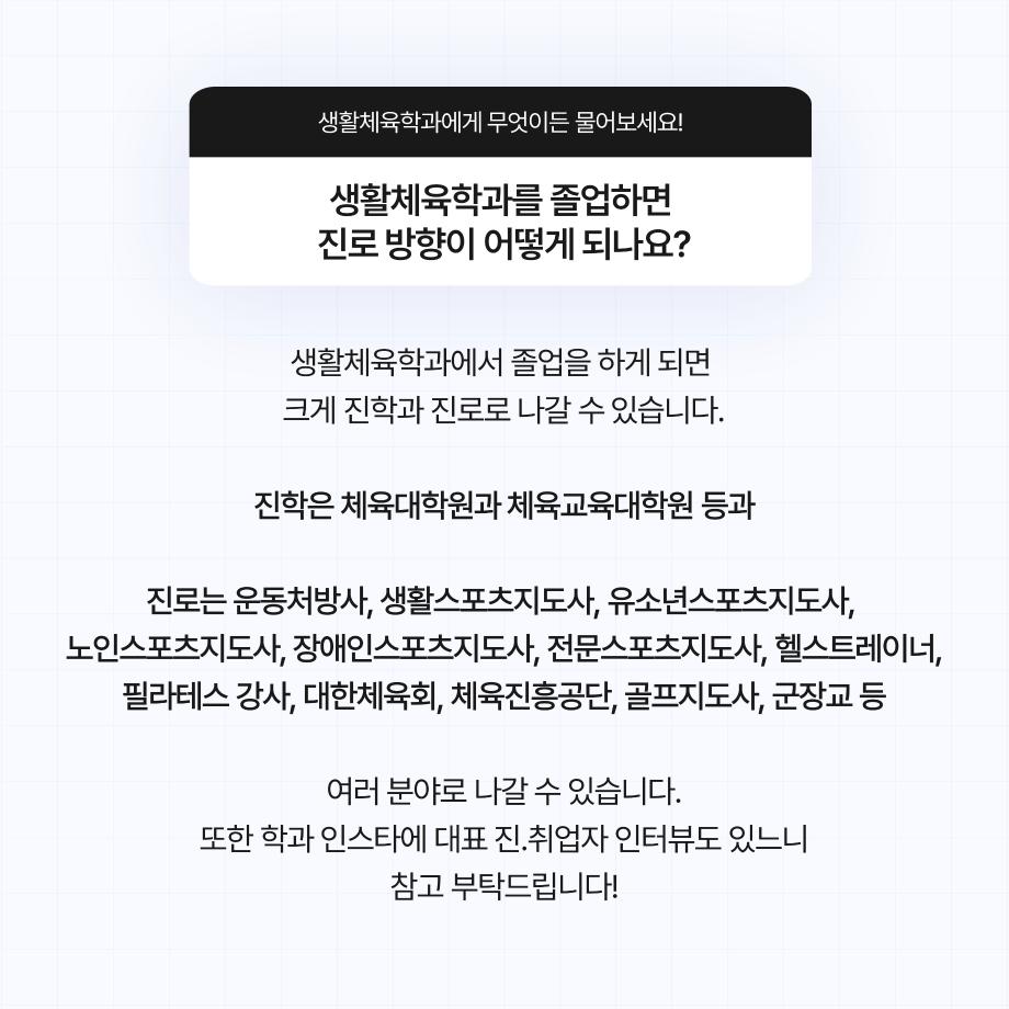 본문 시작 홈으로 커뮤니티SNS 학과소개 진로취업사례 입학안내 교육과정 커뮤니티SNS 홈페이지가이드 학과행사갤러리 학과공지 열린정보SNS 학과동아리 학과행사갤러리 학과MOU 학생회조직도 학과연혁 동문회조직도 학과행사갤러리 페이스북 트위터 프린트 생활체육학과 Q&A 생활체육학과 2513 2024-08-29 생활체육학과 Q&A 목록 이전2024학년도 학생회 다음 2024학년도 생활체육학과 MT 담당부서 : 생활체육학과 담당자 : - 연락처 : 043-469-1289 최종수정일 : 2024-10-26 만족도조사 만족도 조사 이 페이지에서 제공하는 정보에 대하여 만족하시나요? 매우만족 만족 보통 불만족 매우불만족