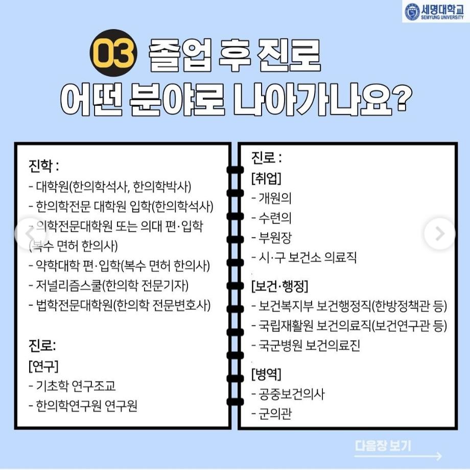 본문 시작 홈으로 대학소식 대학소개 교수소개 대학과정 커뮤니티 대학원 대학소식 홈페이지가이드 포토갤러리 학과공지 포토갤러리 발전기금 위원회 관련사이트 포토갤러리 페이스북 트위터 프린트 한의예과 , 한의학과는 어떤 학과? 한의과대학 3040 2022-01-06 목록 이전세명대학교 한의과대학 미래설계 콘서트 개최 다음 한의학교육평가인증이란? 담당부서 : 한의과대학 담당자 : - 연락처 : 043-649-1701 최종수정일 : 2024-10-26 만족도조사 만족도 조사 이 페이지에서 제공하는 정보에 대하여 만족하시나요? 매우만족 만족 보통 불만족 매우불만족