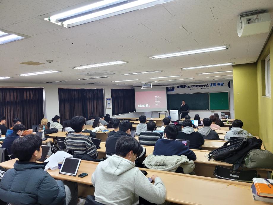 본문 시작 홈으로 대학소식 대학소개 교수소개 대학과정 커뮤니티 대학원 대학소식 홈페이지가이드 포토갤러리 학과공지 포토갤러리 발전기금 위원회 관련사이트 포토갤러리 페이스북 트위터 프린트 [한의학연구소] 초청강연회 특강 한의과대학 5297 2022-11-28 [한의학연구소] 초청강연회 특강 일 시 : 2022.11.21(월요일) 시 간 : 오후 1시 30분 ~ 오후 3시 20분 장 소 : 한의학관 105호 예1 강의실 초 청 강 사 : 한제근 대표님(원일바이오/원일홀딩스) 목록 이전세명한의 축구동아리 '활인', 제1회 전국예비의료인축구대회 3위 다음 2022학년도 연구역량 강화 세미나 담당부서 : 한의과대학 담당자 : - 연락처 : 043-649-1701 최종수정일 : 2024-10-26 만족도조사 만족도 조사 이 페이지에서 제공하는 정보에 대하여 만족하시나요? 매우만족 만족 보통 불만족 매우불만족