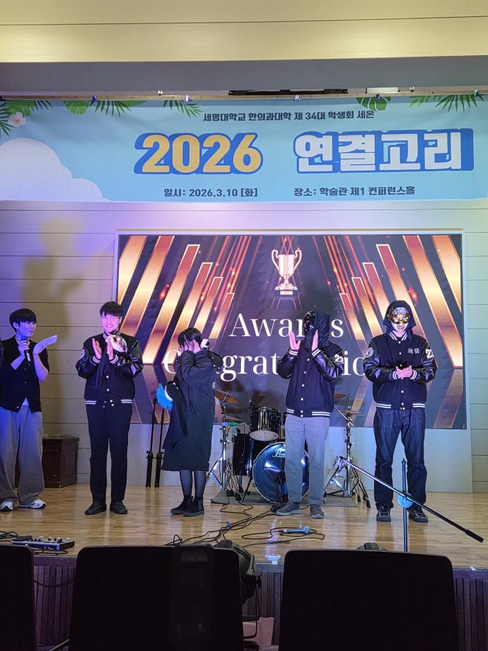 본문 시작 홈으로 대학소식 대학소개 교수소개 대학과정 커뮤니티 대학원 대학소식 홈페이지가이드 포토갤러리 학과공지 포토갤러리 발전기금 위원회 관련사이트 포토갤러리 페이스북 트위터 프린트 2026년 연결고리 행사 한의과대학 568 2026-03-13 2026년 3월 10일 화요일 한의과대학에서는 신입생들의 학교생활 적응을 돕기 위해 한의대 학생회 주관으로 재학생들과 친해지기, 한의대 동아리 소개 및 공연 등으로 이루어진 연결고리 행사를 개최하였습니다. 신입생들과 재학생들에게 소중한 추억으로 남았기를 바랍니다. 목록 이전2026년 한의과대학 신입생 대상 꿈 설계학기 진행 다음 2026년 한의과대학 본과진입식 담당부서 : 한의과대학 담당자 : - 연락처 : 043-649-1701 최종수정일 : 2024-10-26 만족도조사 만족도 조사 이 페이지에서 제공하는 정보에 대하여 만족하시나요? 매우만족 만족 보통 불만족 매우불만족