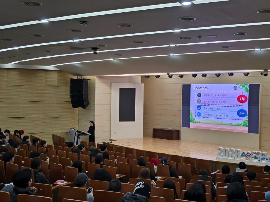 본문 시작 홈으로 커뮤니티 게시판 대학소개 교수소개 교양교육과정 교양교육 프로그램 커뮤니티 게시판 입학안내 홈페이지가이드 자료실 공지사항 자료실 학생 커뮤니티 취업정보 CHARM리더십특강 CHARM리더십특강 CHARM커뮤니케이션 제천문화탐방과 스토리텔링 CHARM인문학콘서트~2018 향토문화탐방~2018 특강 및 기타 행사 포토 갤러리 CHARM리더십특강 페이스북 트위터 프린트 2026-1학기 CHARM리더십특강 1주차 강의 교양대학 208 2026-03-05 2026-1학기 CHARM리더십특강 1주차 강의 정진화교수님_장애와 장애인에 대한 올바른 이해 목록 이전2025-2학기 CHARM리더십특강 보강주차 강의 다음 2026-1학기 CHARM리더십특강 2주차 강의 담당부서 : 교양대학 담당자 : - 연락처 : 043-649-7065 최종수정일 : 2024-10-26 만족도조사 만족도 조사 이 페이지에서 제공하는 정보에 대하여 만족하시나요? 매우만족 만족 보통 불만족 매우불만족