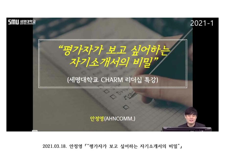 본문 시작 홈으로 커뮤니티 게시판 대학소개 교수소개 교양교육과정 교양교육 프로그램 커뮤니티 게시판 입학안내 홈페이지가이드 자료실 공지사항 자료실 학생 커뮤니티 취업정보 CHARM리더십특강 CHARM리더십특강 CHARM커뮤니케이션 제천문화탐방과 스토리텔링 CHARM인문학콘서트~2018 향토문화탐방~2018 특강 및 기타 행사 포토 갤러리 CHARM리더십특강 페이스북 트위터 프린트 2021- 1학기 CHARM리더십 특강 1-7주차 강의 교양대학 3604 2021-04-30 1주차_"차이"를 넘어 "차별"없는 세상으로_정진화 2주차_나의 강점과 진로 연결하기_나윤숙 3주차_평가자가 보고싶어하는 자기소개서의 비밀_안정영 4주차_진로는 직업선택이 아니라 방향을 선택하는 것이다_김창 5주차_영향력을 돈으로 바꾸는 기술_박세인 6주차_집 나간 멘탈을 찾아드립니다_이영희 7주차_빅데이터와 데이터 리터러시_이상준 목록 이전2020- 2학기 CHARM 리더십 특강 9-14주차 강의 다음 2021- 1학기 CHARM리더십특강 9-14주차 강의 담당부서 : 교양대학 담당자 : - 연락처 : 043-649-7065 최종수정일 : 2024-10-26 만족도조사 만족도 조사 이 페이지에서 제공하는 정보에 대하여 만족하시나요? 매우만족 만족 보통 불만족 매우불만족