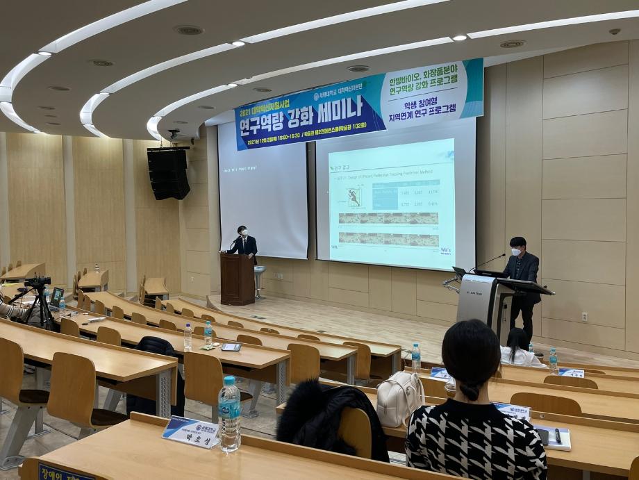 본문 시작 홈으로 커뮤니티 게시판 대학소개 교수소개 교양교육과정 교양교육 프로그램 커뮤니티 게시판 입학안내 홈페이지가이드 자료실 공지사항 자료실 학생 커뮤니티 취업정보 특강 및 기타 행사 CHARM리더십특강 CHARM커뮤니케이션 제천문화탐방과 스토리텔링 CHARM인문학콘서트~2018 향토문화탐방~2018 특강 및 기타 행사 포토 갤러리 특강 및 기타 행사 페이스북 트위터 프린트 2021 연구역량 강화 세미나 교양대학 3756 2021-12-06 2021 대학혁신지원사업 연구역량 강화 세미나 한방바이오, 화장품분야 연구역량 강화 프로그램 목록 이전세명대학교 간호학과 제 26회 나이팅게일 선서식 다음 2021학년도 하반기 외국인유학생 조기적응프로그램 담당부서 : 교양대학 담당자 : - 연락처 : 043-649-7065 최종수정일 : 2024-10-26 만족도조사 만족도 조사 이 페이지에서 제공하는 정보에 대하여 만족하시나요? 매우만족 만족 보통 불만족 매우불만족