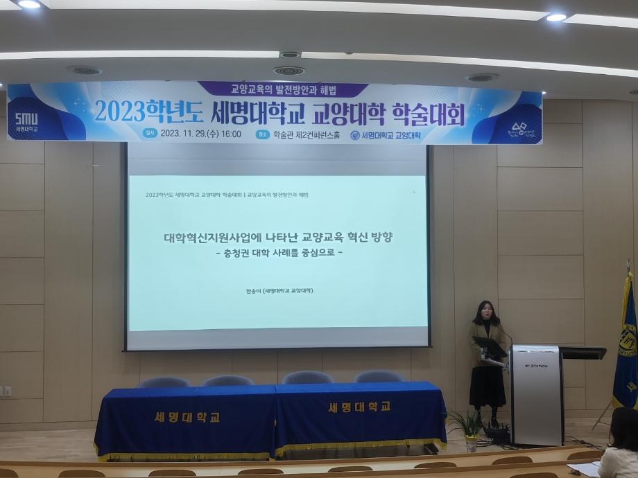 본문 시작 홈으로 커뮤니티 게시판 대학소개 교수소개 교양교육과정 교양교육 프로그램 커뮤니티 게시판 입학안내 홈페이지가이드 자료실 공지사항 자료실 학생 커뮤니티 취업정보 특강 및 기타 행사 CHARM리더십특강 CHARM커뮤니케이션 제천문화탐방과 스토리텔링 CHARM인문학콘서트~2018 향토문화탐방~2018 특강 및 기타 행사 포토 갤러리 특강 및 기타 행사 페이스북 트위터 프린트 2023학년도 세명대학교 교양대학 학술대회 교양대학 2340 2023-11-29 2023학년도 세명대학교 교양대학 학술대회 -교양교육의 발전방안과 해법- 목록 이전2023-1[미래사회CHARM인성]교과목 결과 공유 세미나 담당부서 : 교양대학 담당자 : - 연락처 : 043-649-7065 최종수정일 : 2024-10-26 만족도조사 만족도 조사 이 페이지에서 제공하는 정보에 대하여 만족하시나요? 매우만족 만족 보통 불만족 매우불만족