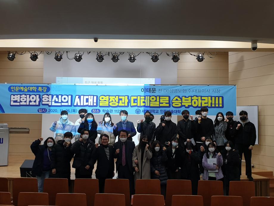 코로나 예방을 위하여 방역수칙과 소독 및 거리간격을 철저하게 유지을 한 후 진행된 이태운강사의 입지전적인 성공의 밑바탕의 이야기와 함께 매사에 열정과 온 힘을 다해 임하라는 말과 함께 미래의 시대는 학생들의 개개인의 역량이 필요한 시대임을 강조하였다. 또한, 사회복지학과 지윤지 학생과 함께 공연도 하여 참여한 학생들의 많은 박수갈채를 받았다.