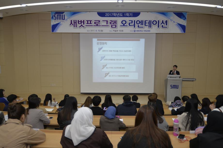 본문 시작 새벗프로그램 OT 대외협력처 5420 2017-04-10 본교 한국인재학생과 외국인유학생의 멘토-멘티 프로그램인 새벗프로그램의 오리엔테이션을 실시했습니다. 목록 이전2017 봄학기 한국어연수과정 OT 다음 2017 호스트패밀리 OT 담당부서 : 국제교육원 담당자 : - 연락처 : 043-649-1185 최종수정일 : 2024-10-26 만족도조사 만족도 조사 이 페이지에서 제공하는 정보에 대하여 만족하시나요? 매우만족 만족 보통 불만족 매우불만족