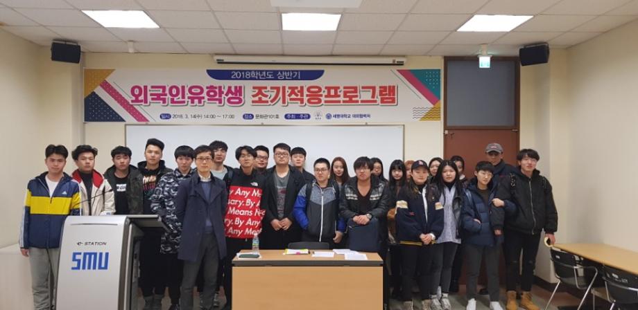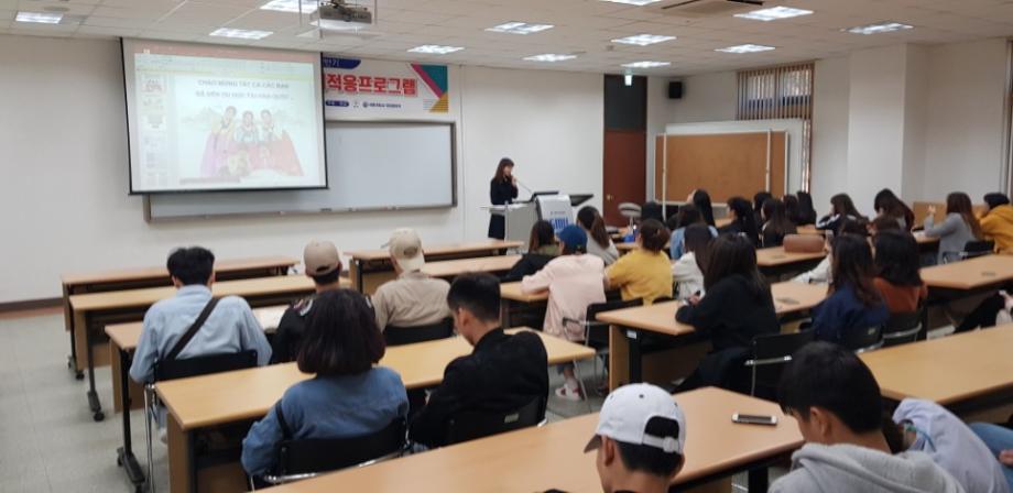 본문 시작 2018-1 외국인 유학생 조기적응 프로그램 국제교육원 5990 2018-03-14 03월 14일 법무부에서 주관하는 입국 초기의 외국인에게 필요한 정보를 제공하는 조기적응 프로그램을 진행하였습니다. 본 교육에서는 필수적인 생활정보, 법률/제도 등 을 알려주어 보다 편한 한국 생활을 영위할 수 있도록 도움을 주는데 목적이 있습니다. 목록 이전2018 봄학기 한국어 연수과정 개강식 다음 2018-1 외국인 유학생 간담회 담당부서 : 국제교육원 담당자 : - 연락처 : 043-649-1185 최종수정일 : 2024-10-26 만족도조사 만족도 조사 이 페이지에서 제공하는 정보에 대하여 만족하시나요? 매우만족 만족 보통 불만족 매우불만족