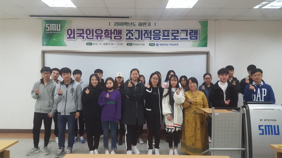 본문 시작 2018 하반기 외국인유학생 조기적응프로그램 국제교육원 5621 2018-10-18 2018 하반기 외국인유학생 조기적응프로그램 목록 이전2018 외국인유학생 한국어말하기대회 다음 2018 외국인유학생 체육대회 담당부서 : 국제교육원 담당자 : - 연락처 : 043-649-1185 최종수정일 : 2024-10-26 만족도조사 만족도 조사 이 페이지에서 제공하는 정보에 대하여 만족하시나요? 매우만족 만족 보통 불만족 매우불만족