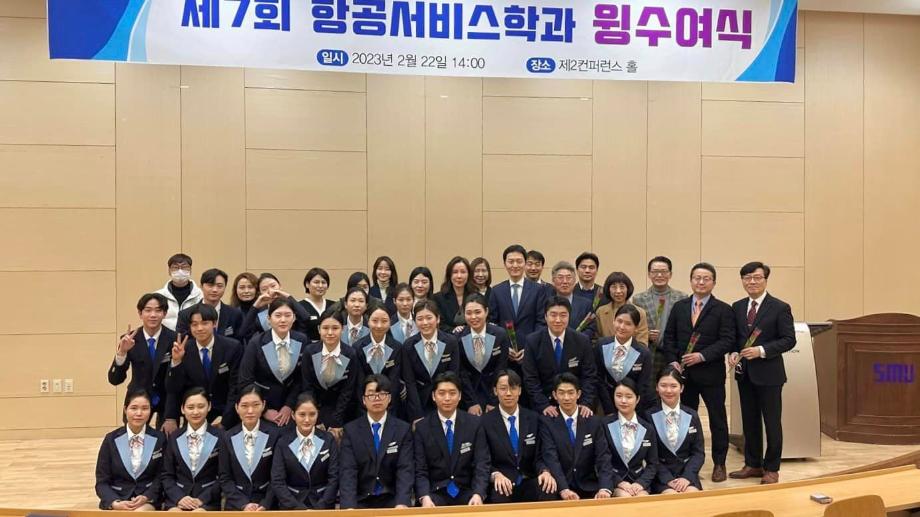 지난 2월 22일, 세명대학교 항공서비스학과 23학번 신입생분들을 위해 ✈️ 제 7회 윙 수여식 ✈️ 행사가 진행되었습니다 !