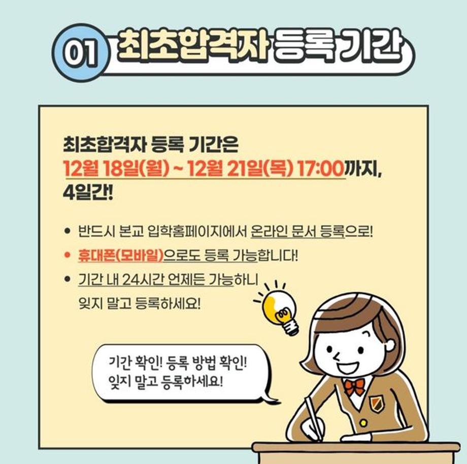 📣 수시모집 합격자(최초 및 충원) 최종 등록일