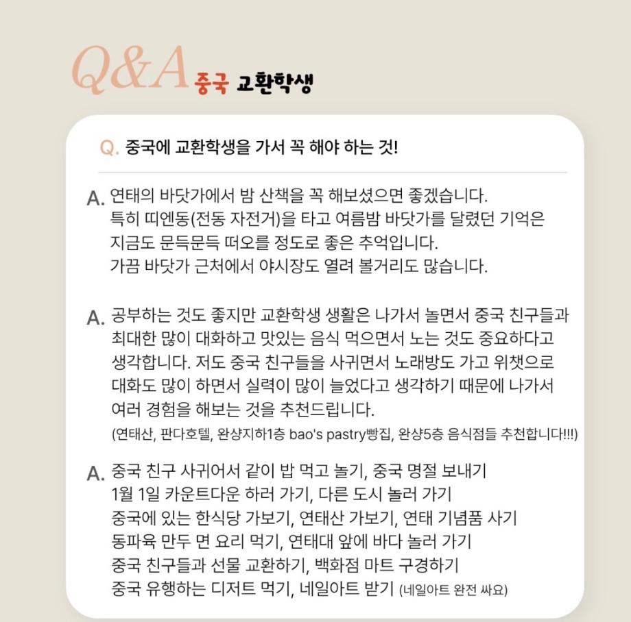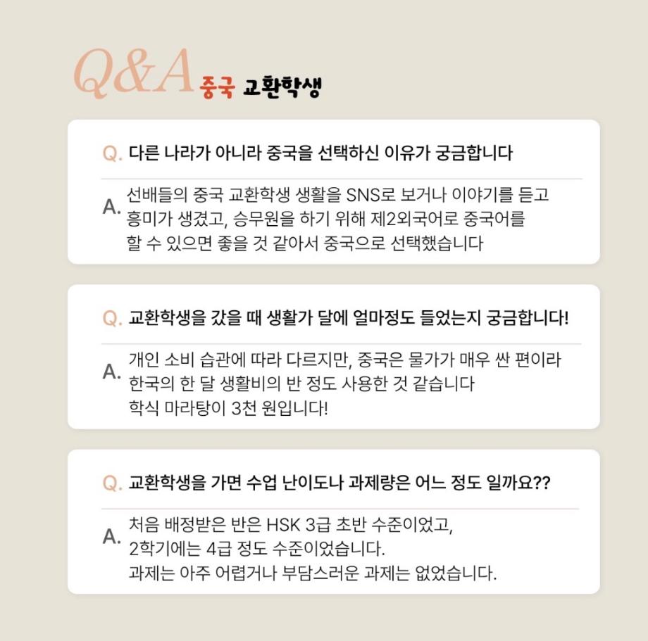 중국 교환학생 Q&A
