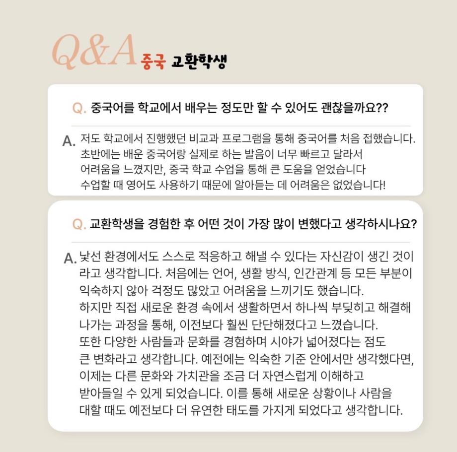 이번 게시물에서는 중국 교환학생을 다녀온 선배님들의 생생한 경험을 바탕으로,